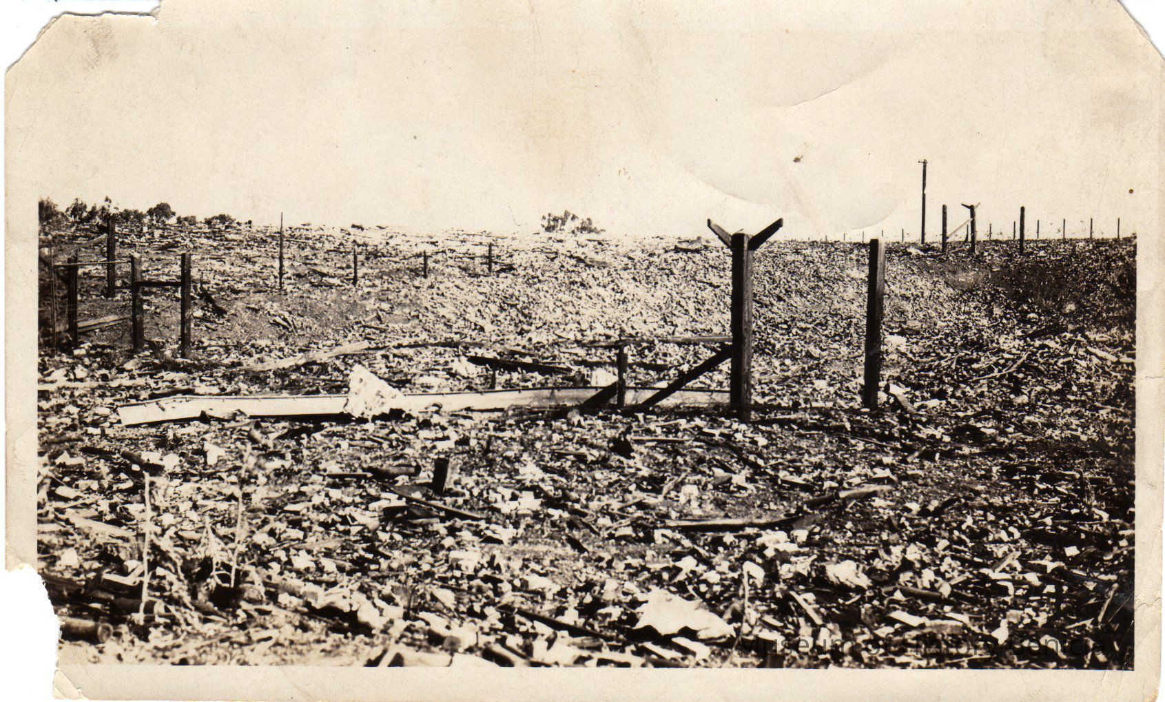 B/W photograph: two homes destroyed by explosion and fire at Benicia Arsenal, 1922.