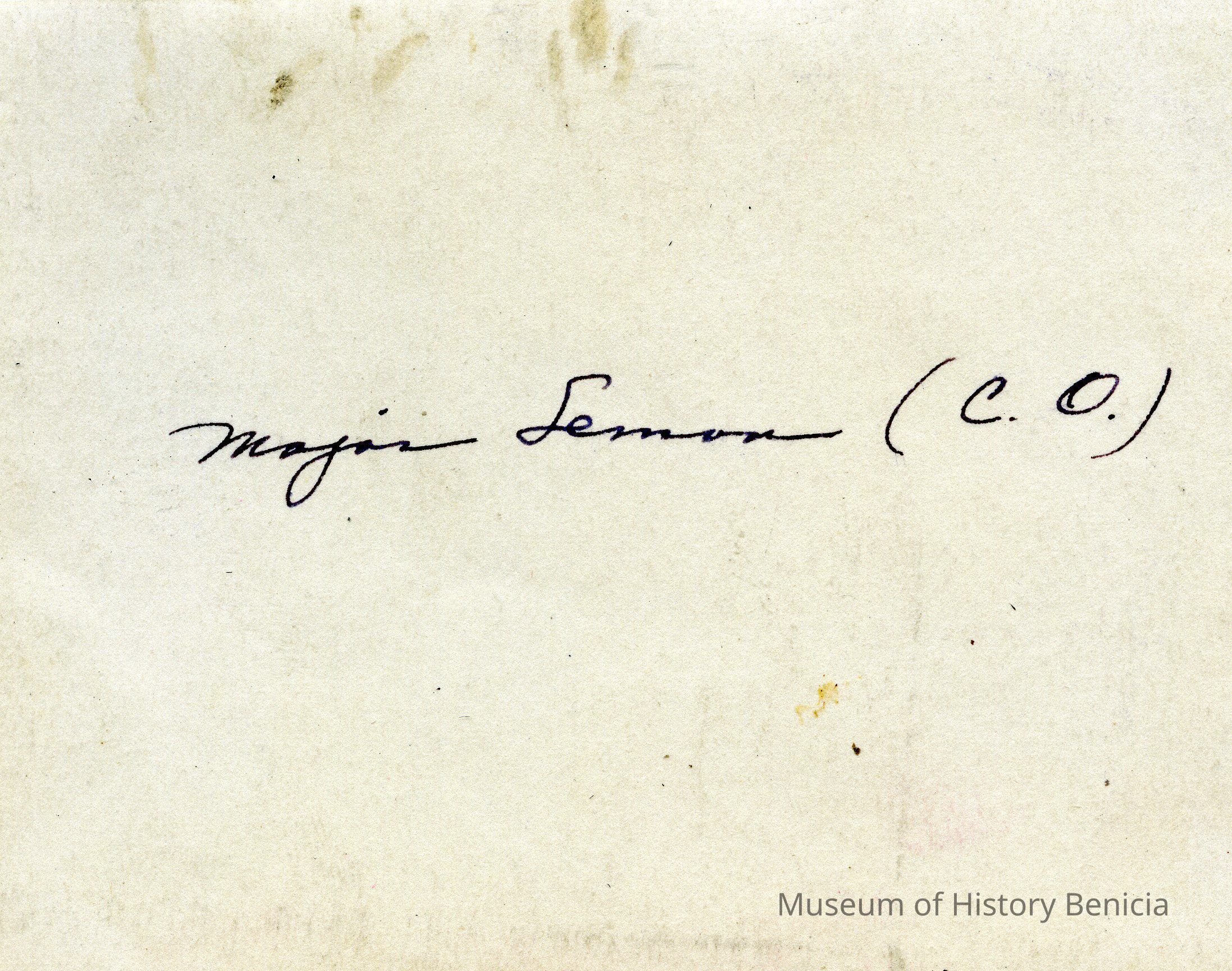 This is a photo of Major Lemon, the Commanding Officer at the Benicia Arsenal. This is Maj. George F. Lemon who was commander of the Benicia Arsenal from 1928 to 1932.Collection