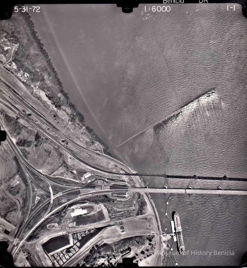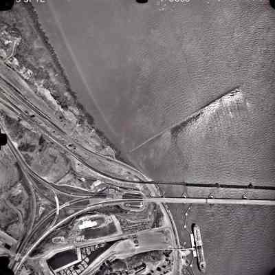 B/W aerial view of dock, bridges and south section of the Industrial Park.Collection