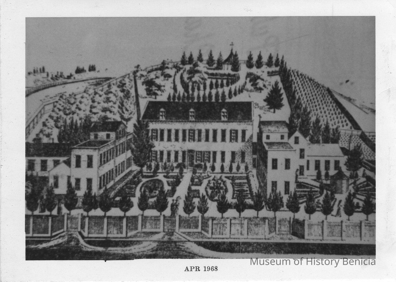B/W photograph: St. Catherine's Convent , 1878, atlas of Solano County photograph of a lithograph