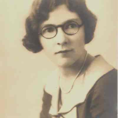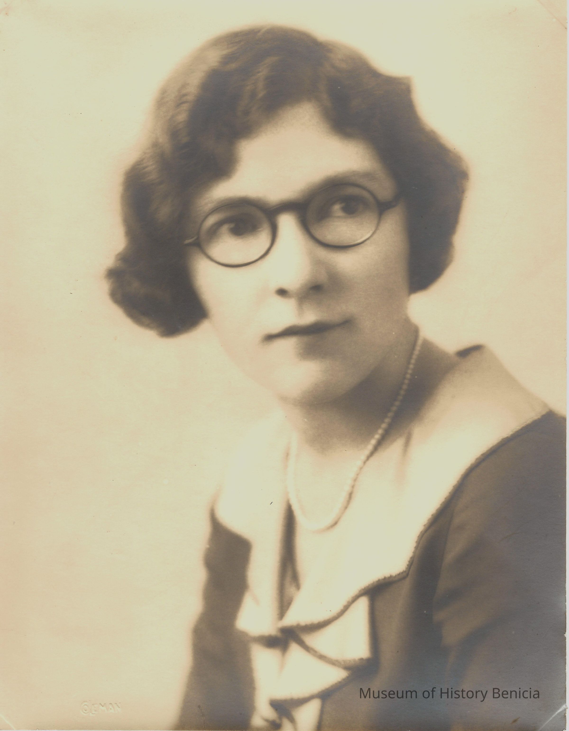 shows a young woman (near 20 years of age ?) in a formal pose with glasses and wearing pearlsCollection