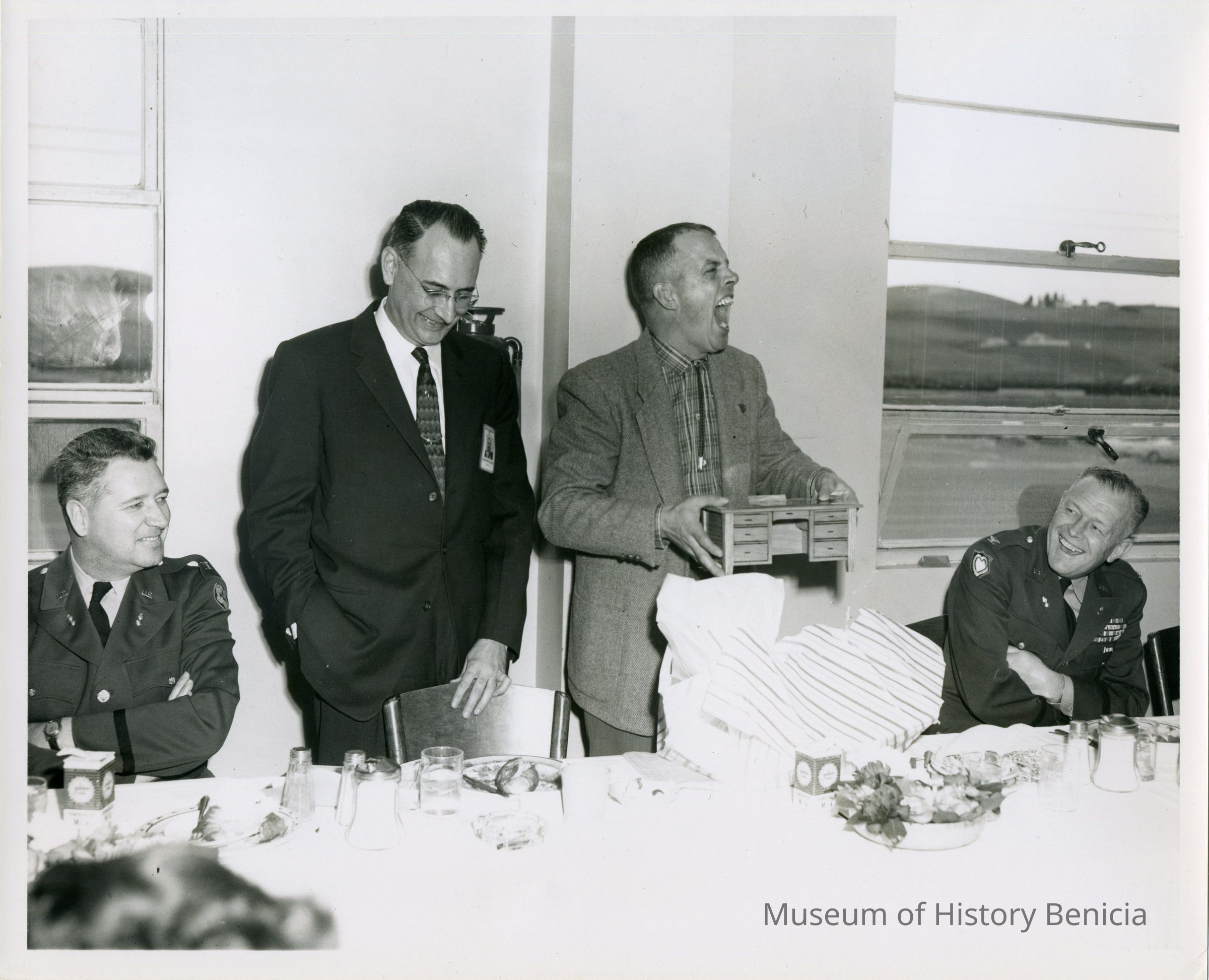 Apparently retirement luncheon for one of the officers at Benicia Arsenal, hosted by John Power, Civilian Chief, and Col. Lawther, C.O.Collection