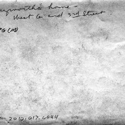 Photo of a house. On the back it says Clayworth's home West G and 3rd Street. There was a Joseph C Clayworth (1879) and family in Benicia on the 1910 census. They lived on West 3rd street. He was a chemist at a drug store. His mother was Elizabeth, wife Vesta (1885), and son Joseph M (1908).Collection