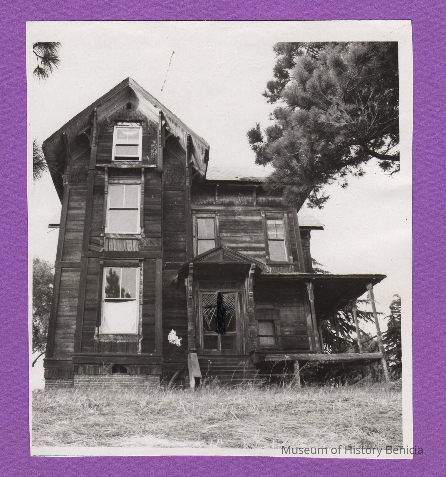 B/W Photograph: per back: W. L. Crooks home on Benicia waterfront West G Street. Mayor of Benicia, Crooks lived here for many years and his home was a showplace. Home is shown in dilapidated condition before it was restored in the 1980's.Collection
