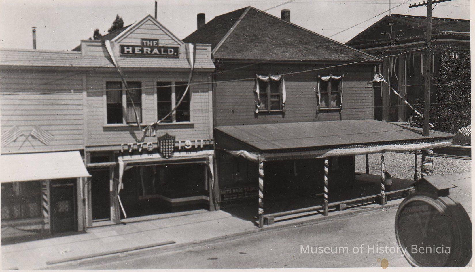 B/W Photograph: "The Herald" newspaper office on First Street between F and G Streets.