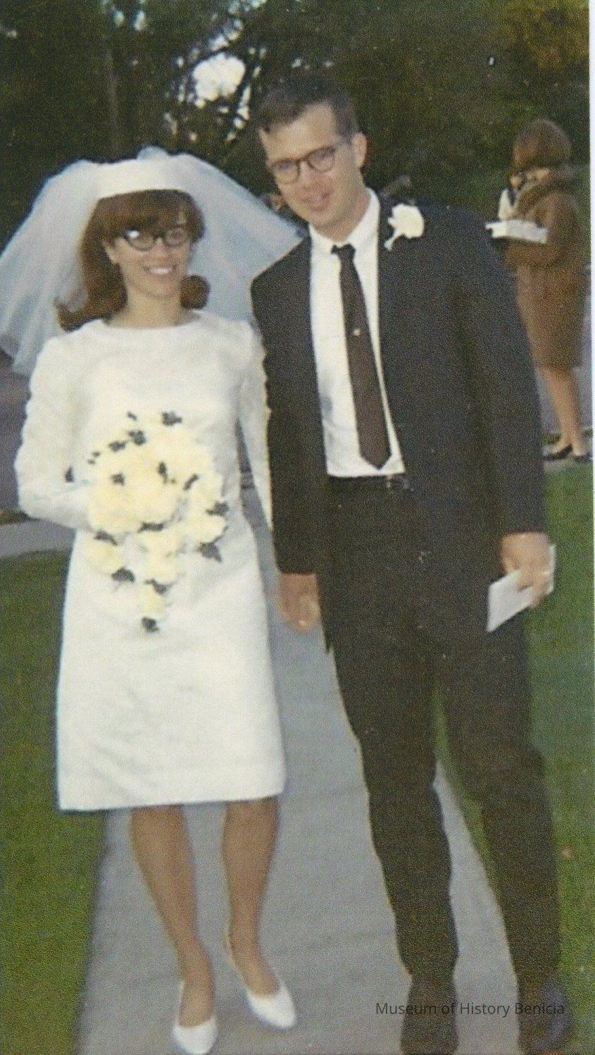 Color Photograph of Jim and Roberta Garrett shortly after their wedding ceremony April 1967.