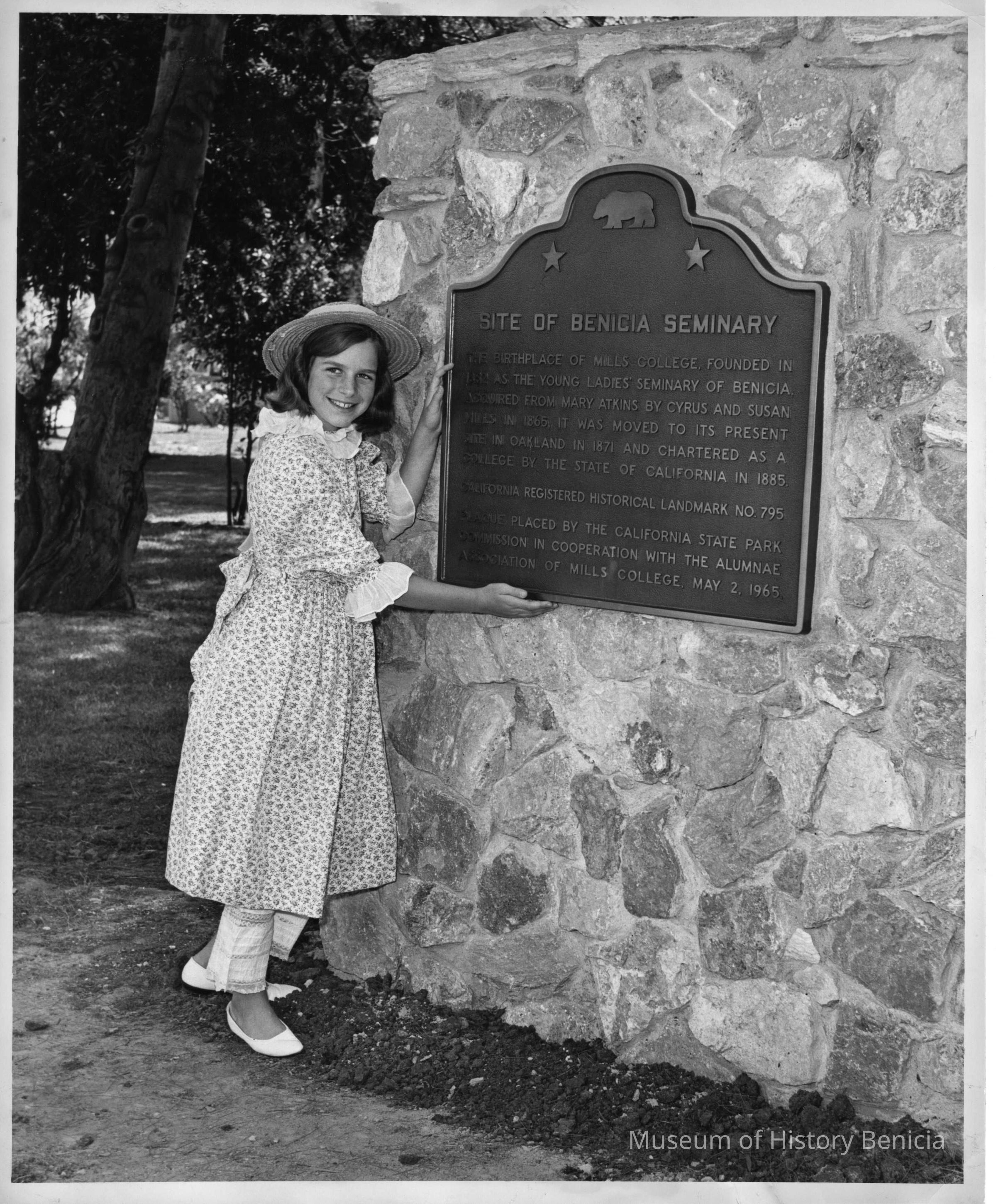 Newspaper photo of the dedication ceremonies for the California State Historical Landmark honoring the 1852 founding in Benicia of the Young Ladies Seminary -- forerunner of today's Mills College (May 2, 1965). Given to Jack O'Grady by Benicia Herald editor Marcus Griffin.