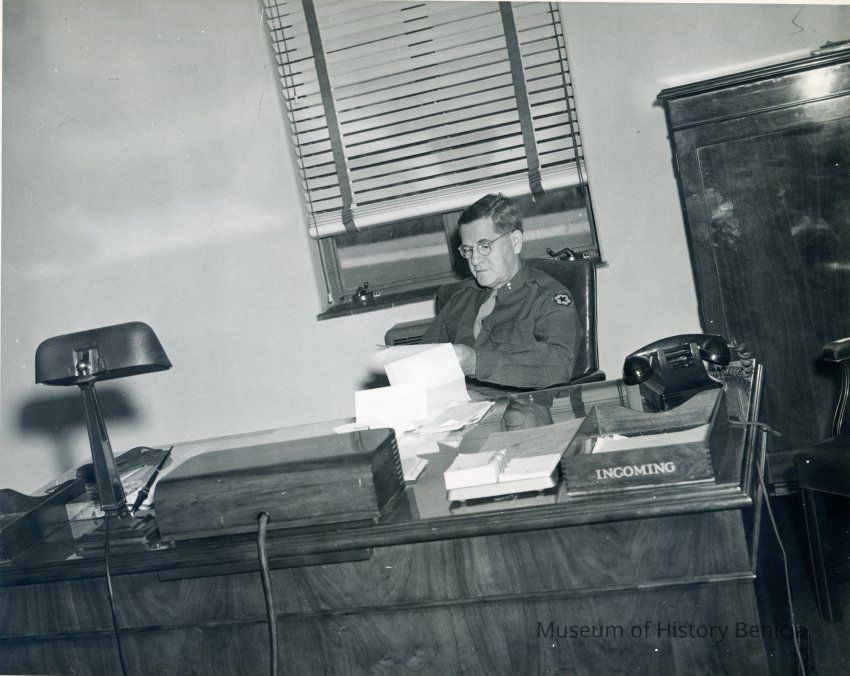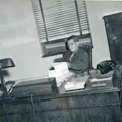 The man at the desk is Col. Lewis A. Nickerson