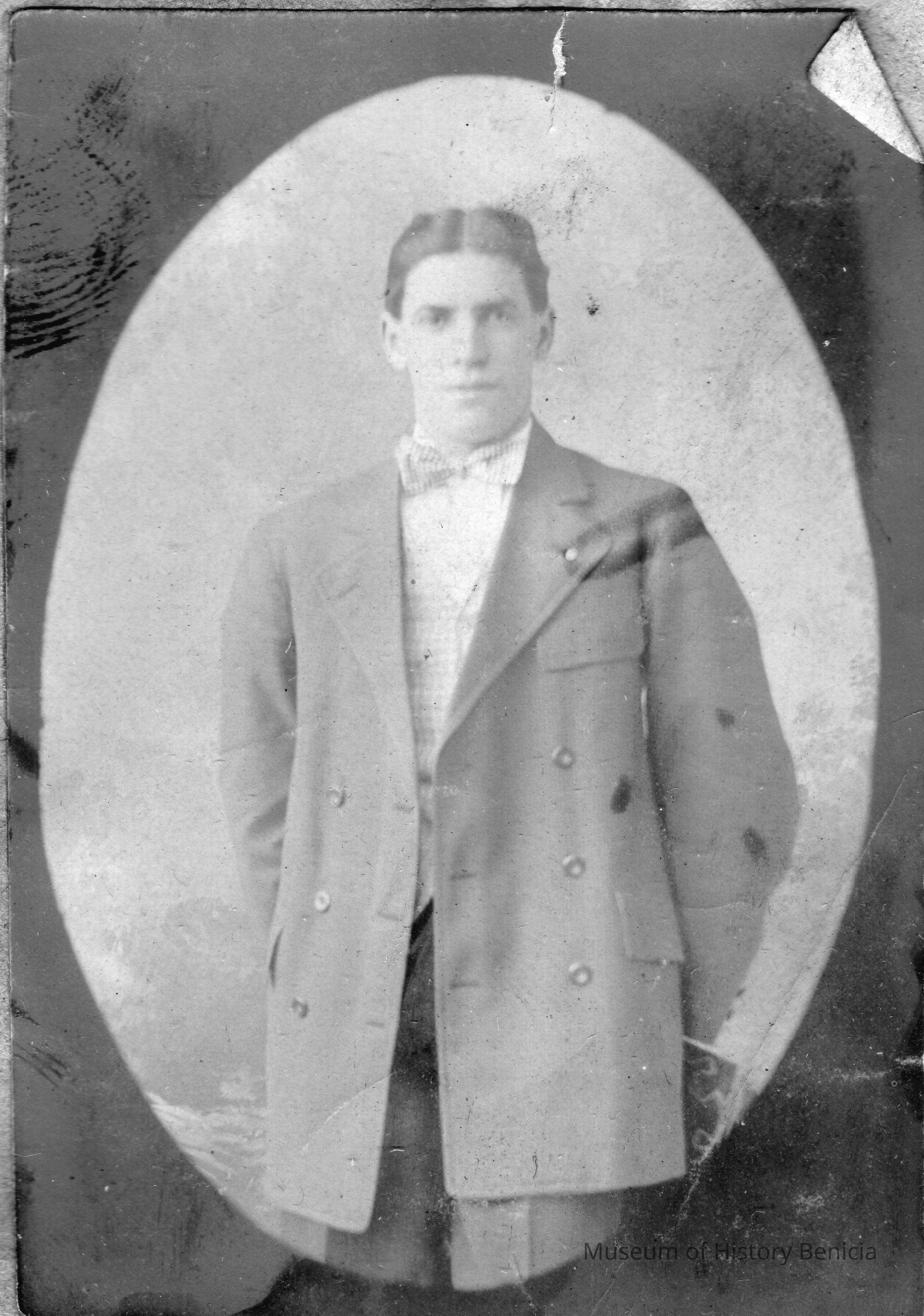 Photo album with the name "Jim Malone" written inside several times. There are about 10 photos inside the album. The individual photos will be scanned separately.
