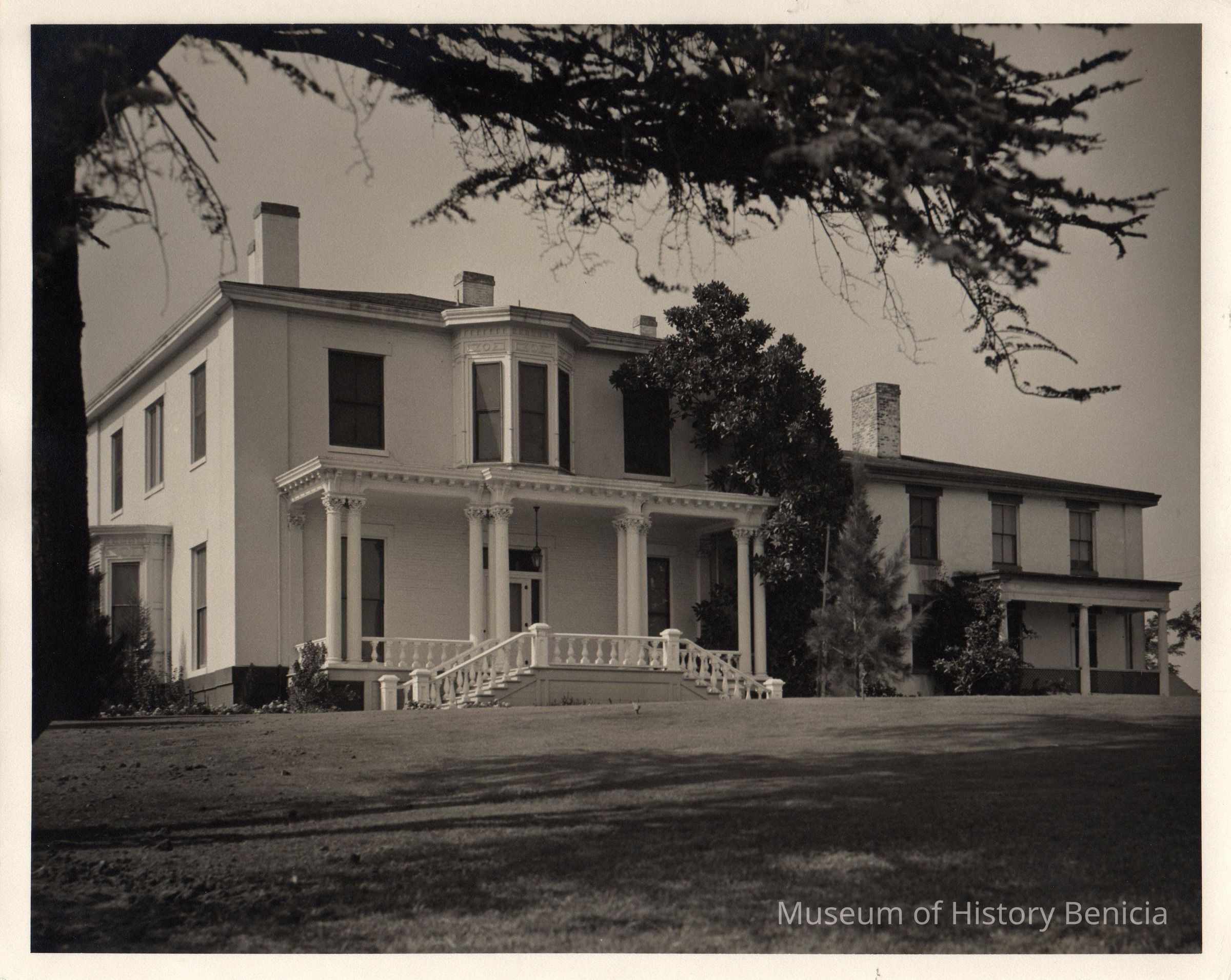 B/W photograph, Benicia Arsenal Commandant's Residence or Commanding Officer's Quarters, looking west.