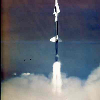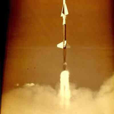Photo of U.S. Army missile taking off. There is no date indicated. The back does say that the photo is unclassified.