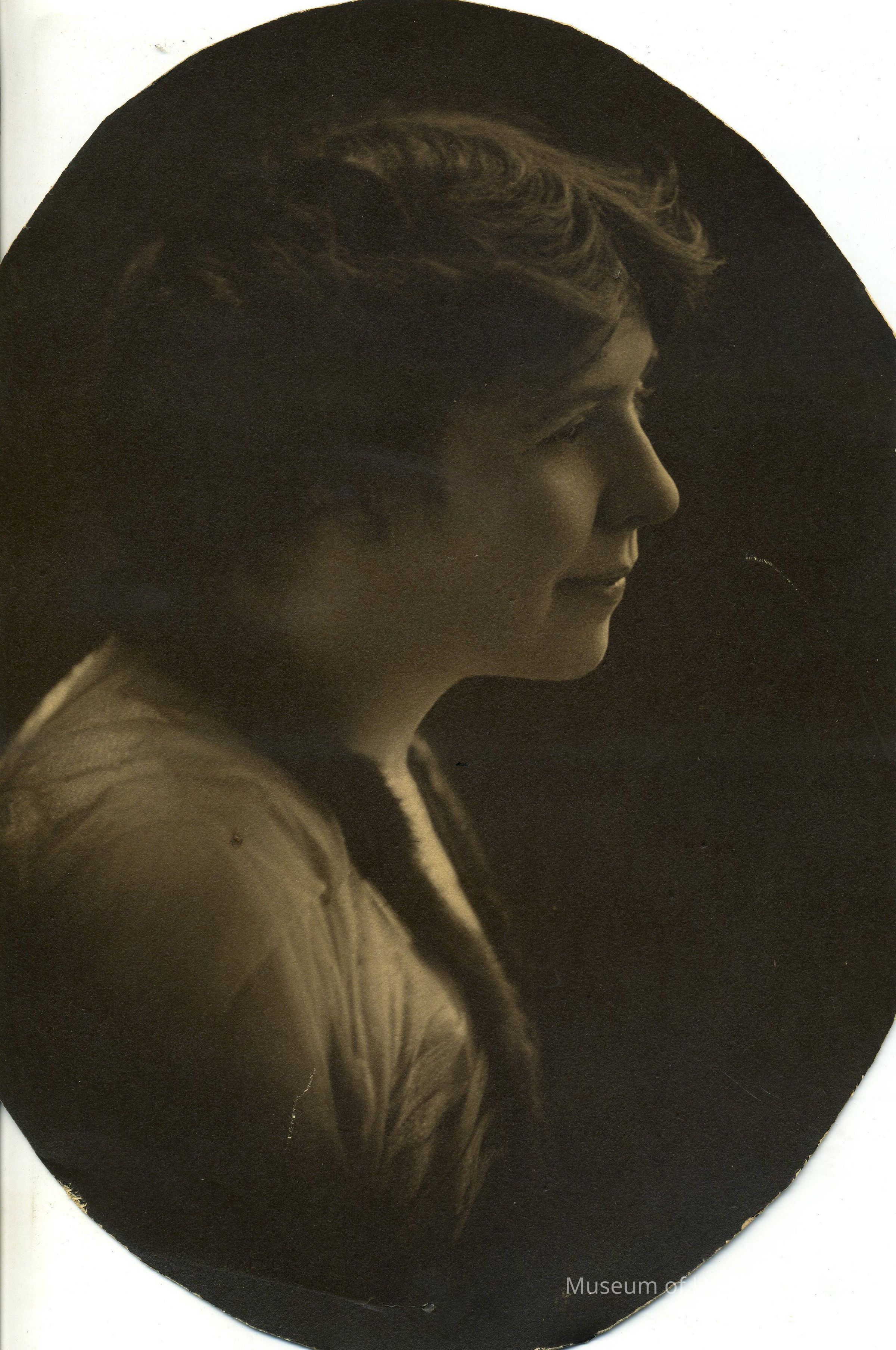 B/W photograph of an unidentified woman; cut to an oval 6-1/4" x 9-1/2" [From the Rankin Collection]