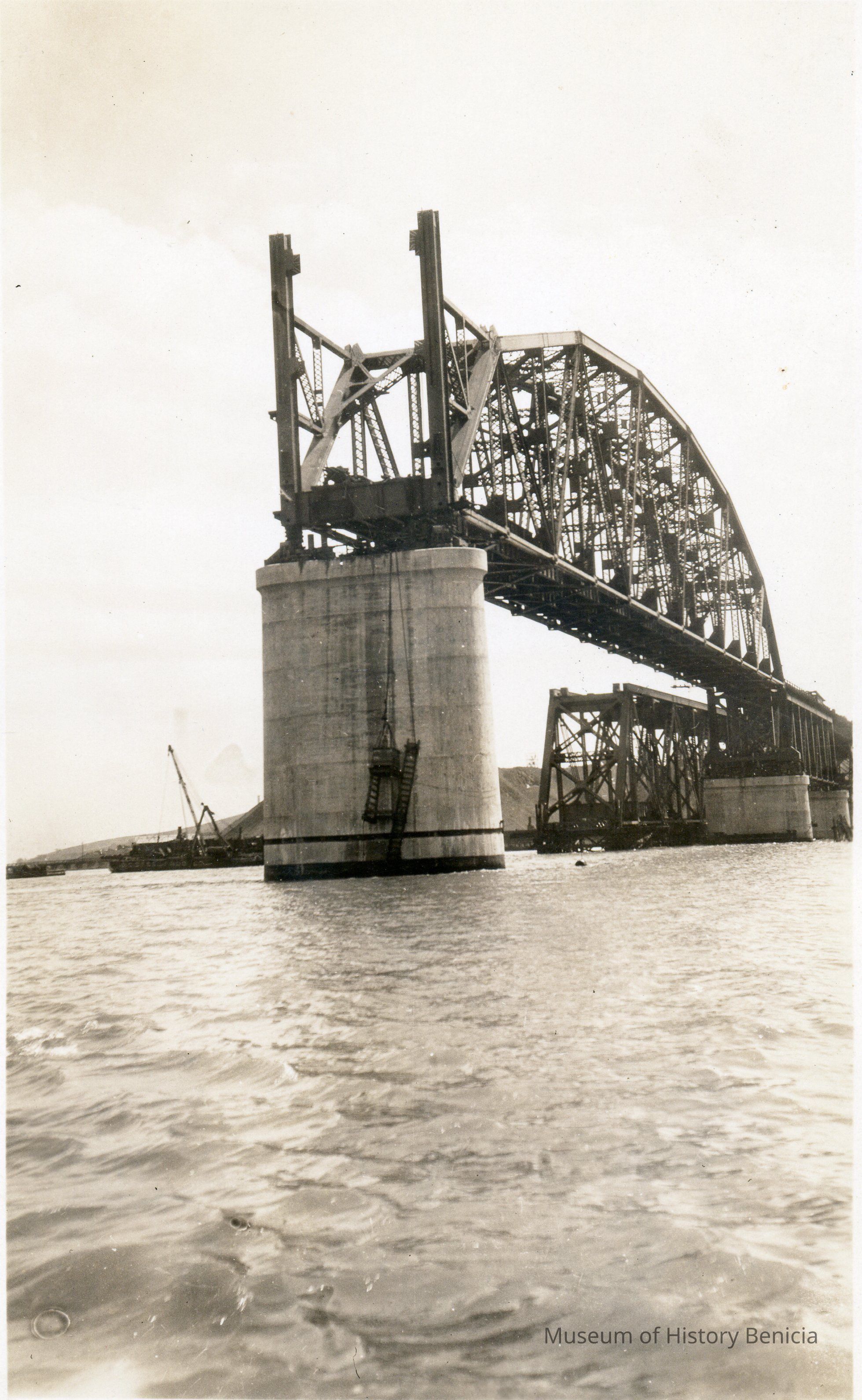 Photo of a tower used for the building of the Carquinez railroad bridge in 1930.