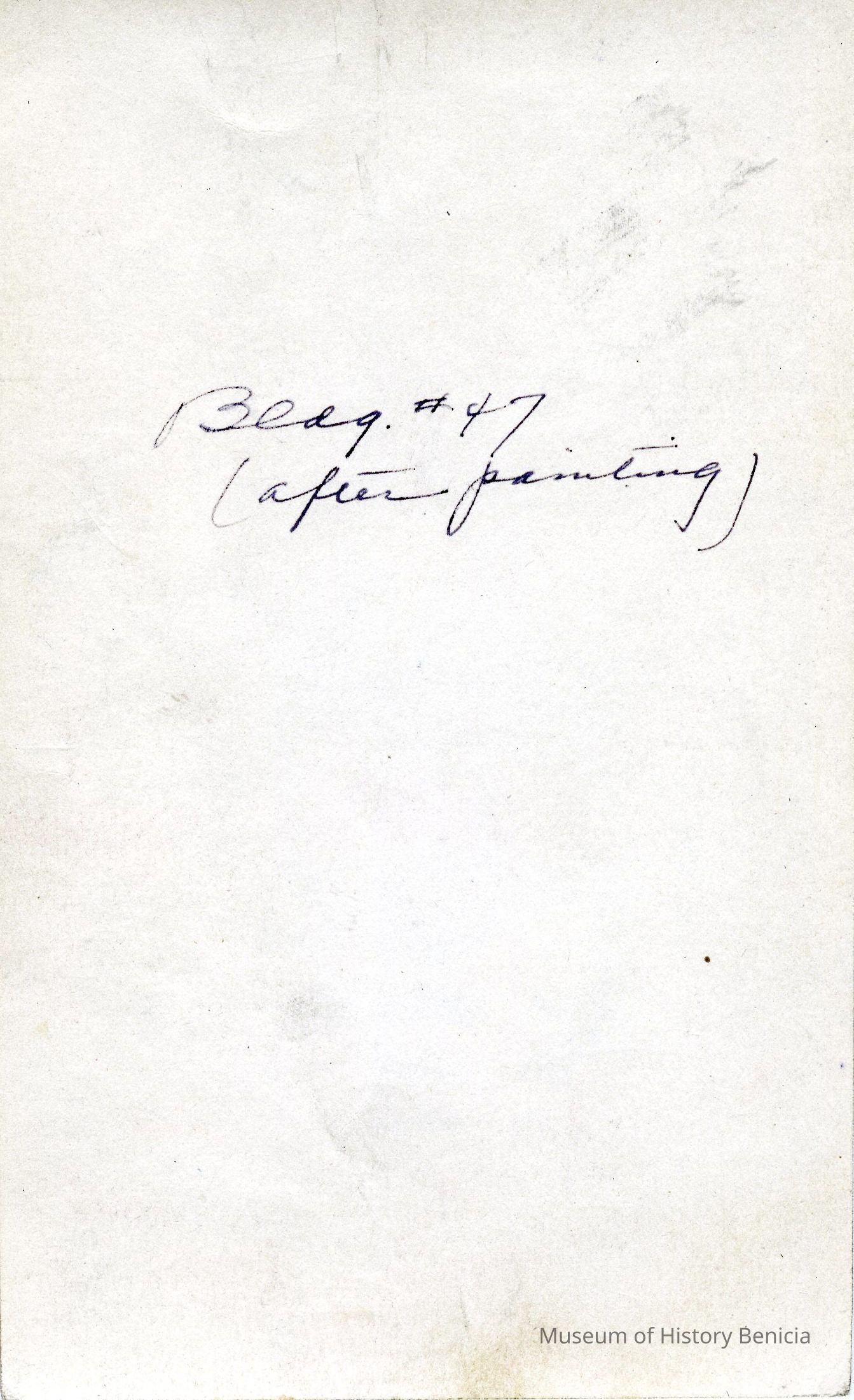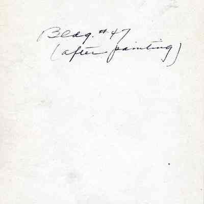 This is a photograph of a brick office building at the Arsenal. It is building number 47 which was originally built in 1870. The original building was 44 ft x 63 ft and had natural stone trim. This photo shows the building after it was painted white.