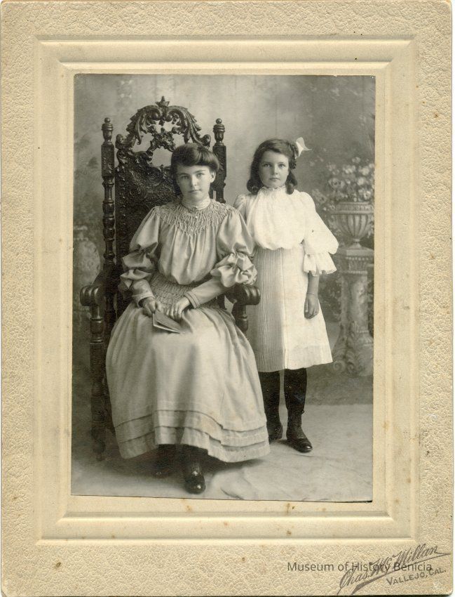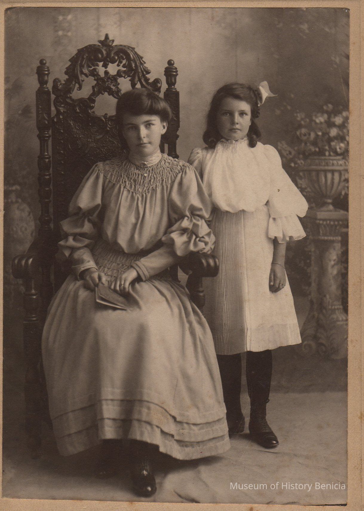 B/W photograph: Rita and mother Elizabeth White. Rita married Martin Mini and her son Bob (born 1922) owned a hardware store in Benicia.