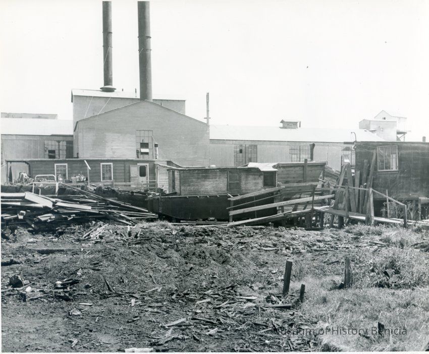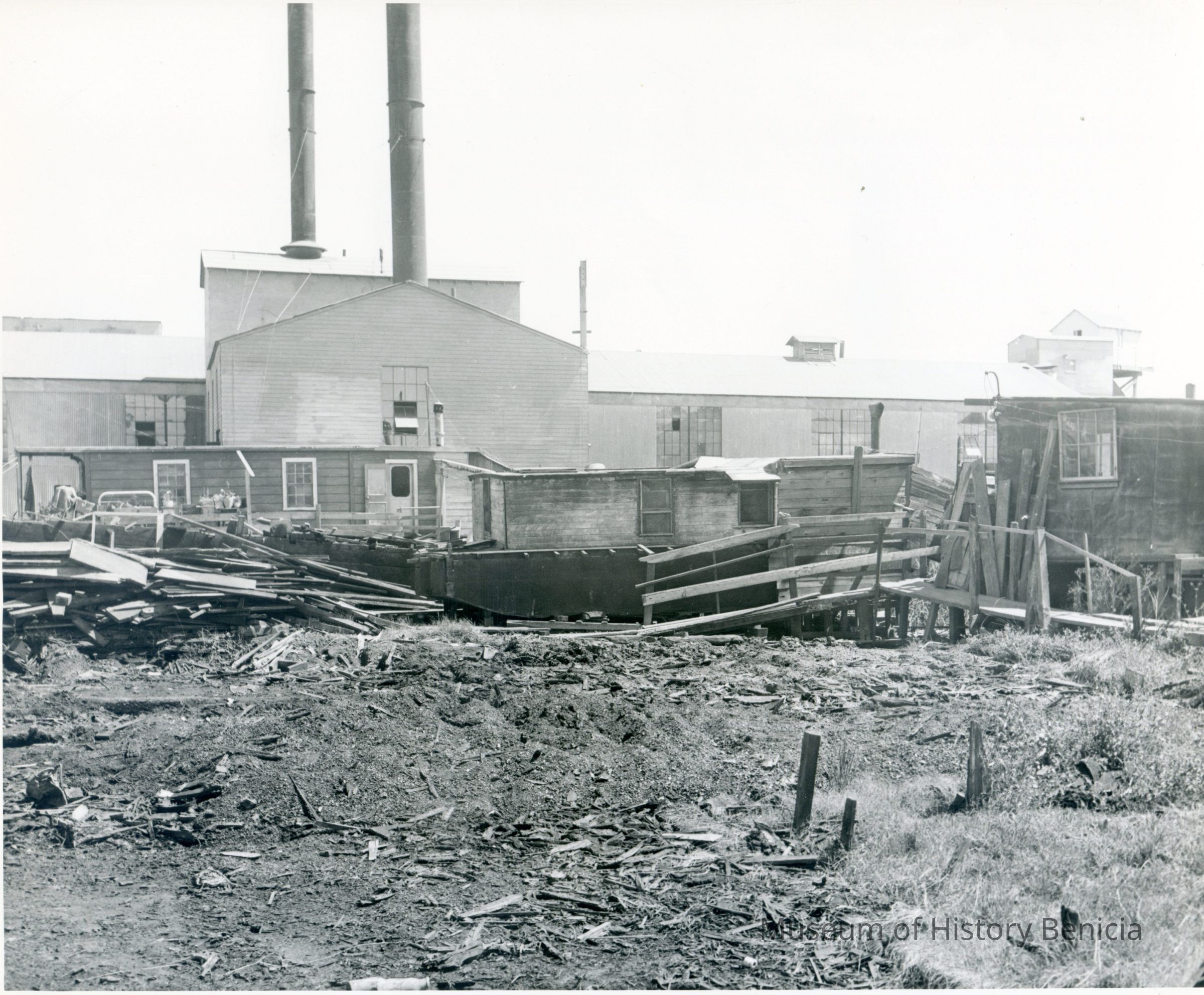This is a copy of a photo of the Benicia Cannery after the fire.