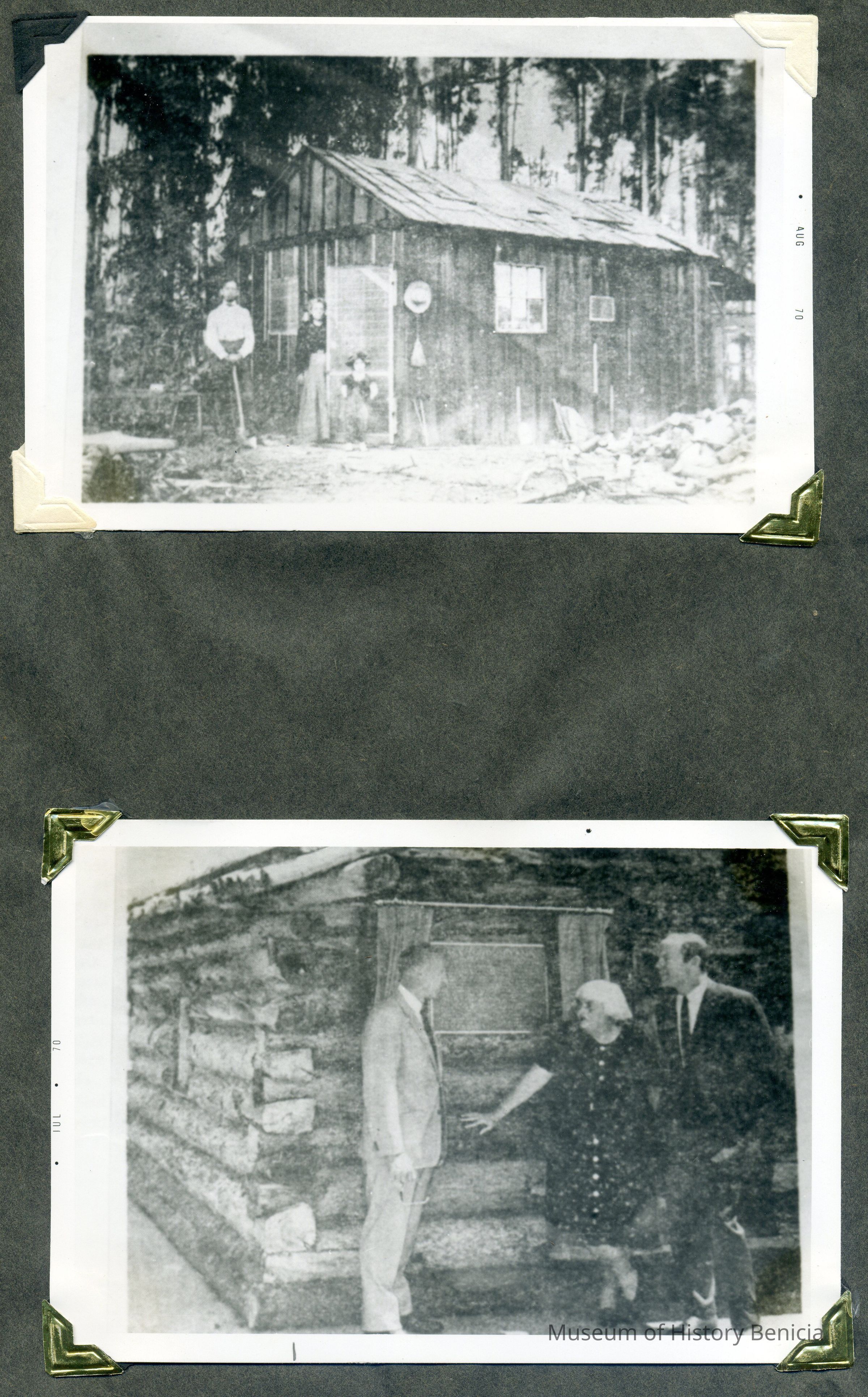 These photos were taken from pages of a photo album that had been stored in a 3-ring binder. The pages from the album are scanned as a page and then individual photos, when there are multiple photos on a page, are scanned separately. Each page has a number and the photos from that page are shown with the same number and followed by a letter.