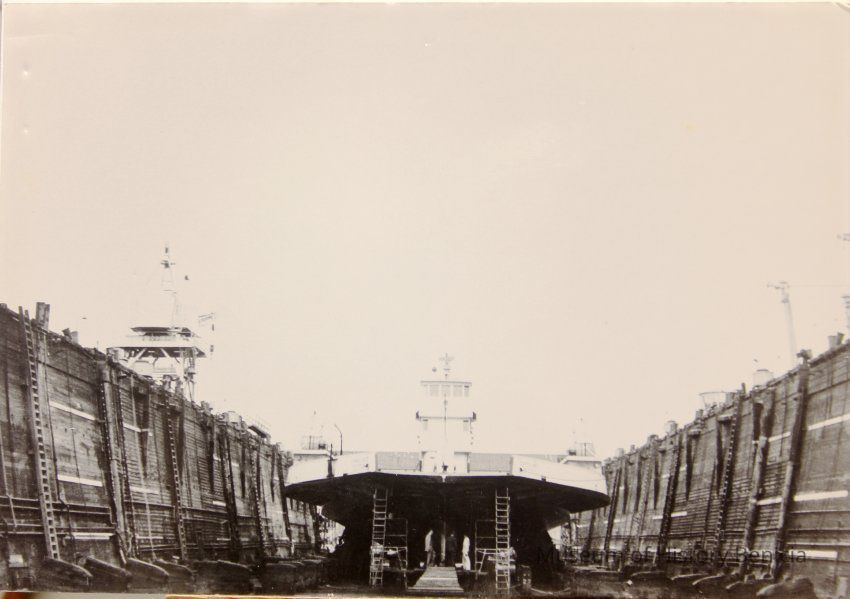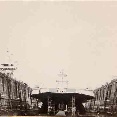 B/W photograph Ferryboat "Carquinez" in dry dock, California's state owned ferry operated from 1956-1962.