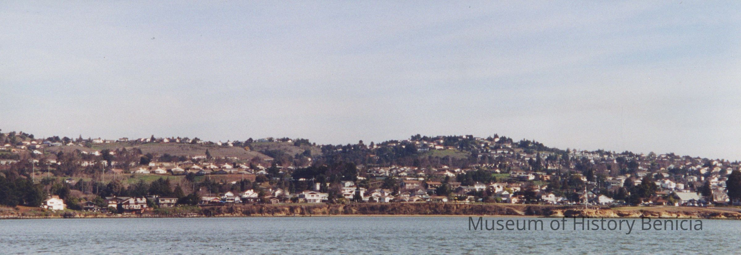 Color Photograph: Panoramic view of the shoreline of Western Benicia with hills in the background; Ninth Street Beach is at the rightCollection