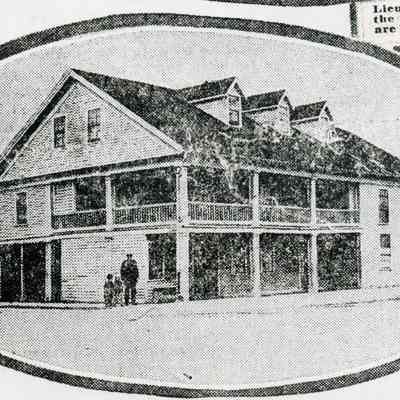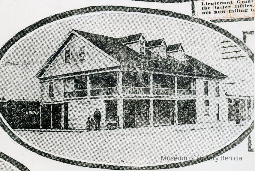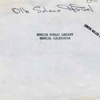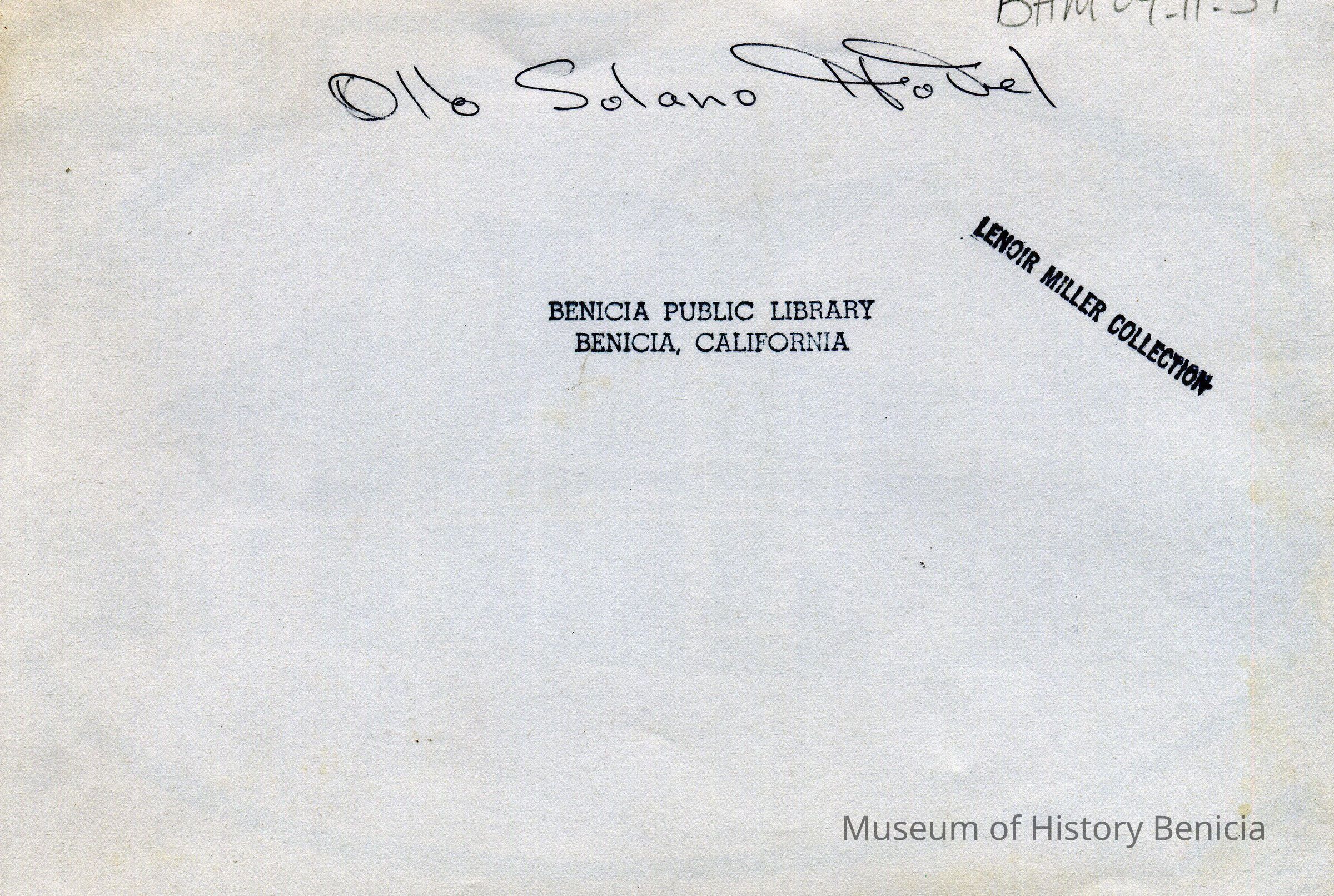 B/W copy of a drawing or etching (?) of the old Solano Hotel.