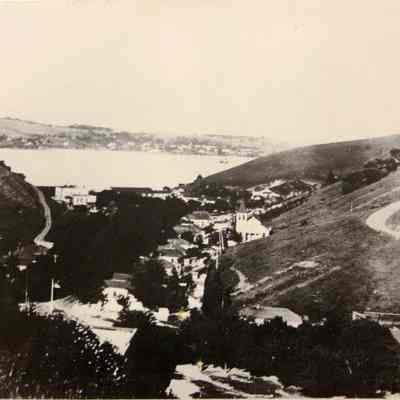 Town of Port Costa in Bull Valley, Contra Costa County. Black and white photo.