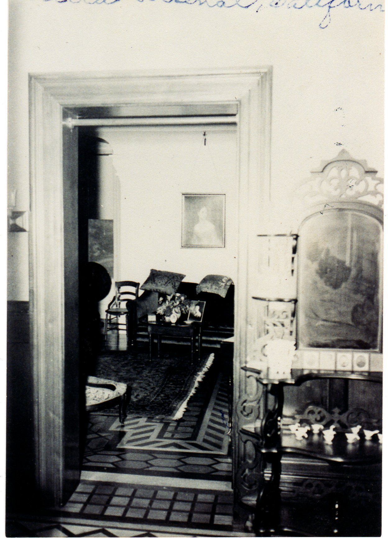 B/W photograph furnished interior room of the Commanding Officer's Quarters Benicia Arsenal