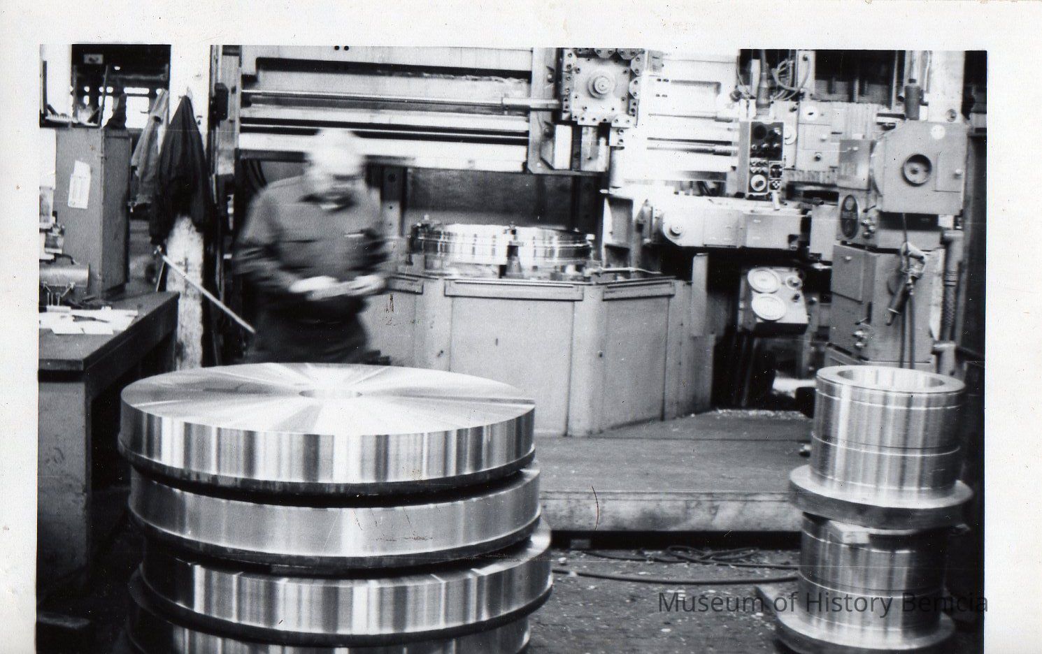 Black and white photograph of William Porter, precision machinist in the machine shop.