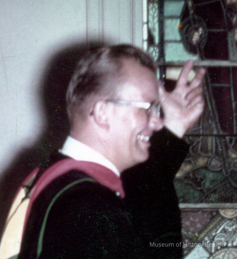 Kiwanis Club of Benicia Presidents 1942-1956: Fred C. Jensen, 1942; Alfred R. Johnsen, 1943; Michael J. Fitzgerald, 1944; Joseph H. Henderson, 1945; Barney Russell, 1946; Chester W. Arnold, 1947; Raymond McCall, 1948; Jack C. McCart, 1949; Masten Spencer, 1950; Al LeFevre, 1951; R.K. Bob Winters, 1952; Milo Passalacqua, 1953; C.T. Ted Gustatson, 1954; Mike Rago, 1955; Quentin W. Babcock, 1956.Collection