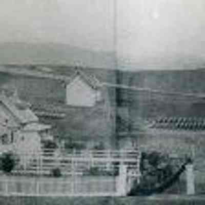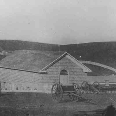 B/W panoramic view of Arsenal/Benicia Barracks, 1865.
