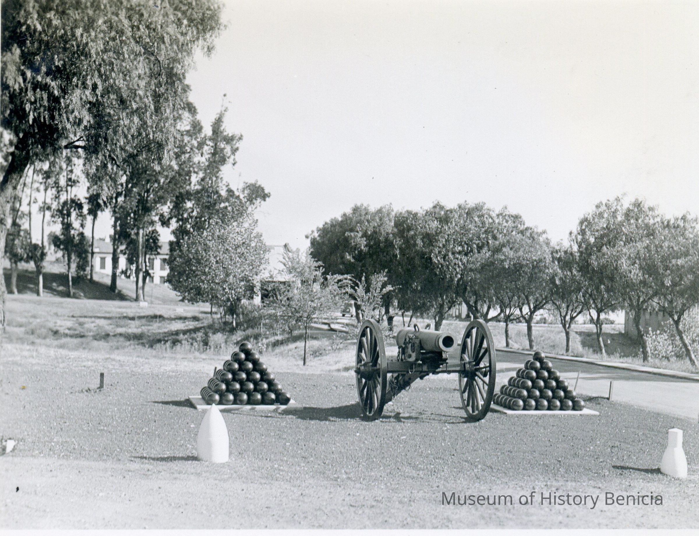 This is a photo of a cannon and cannon balls outside the Benicia Arsenal buildings. This is a model 1841 Howitzer. This is a 24 pounder. The 12 pounder was more common. This was commonly used in the Civil War.Collection