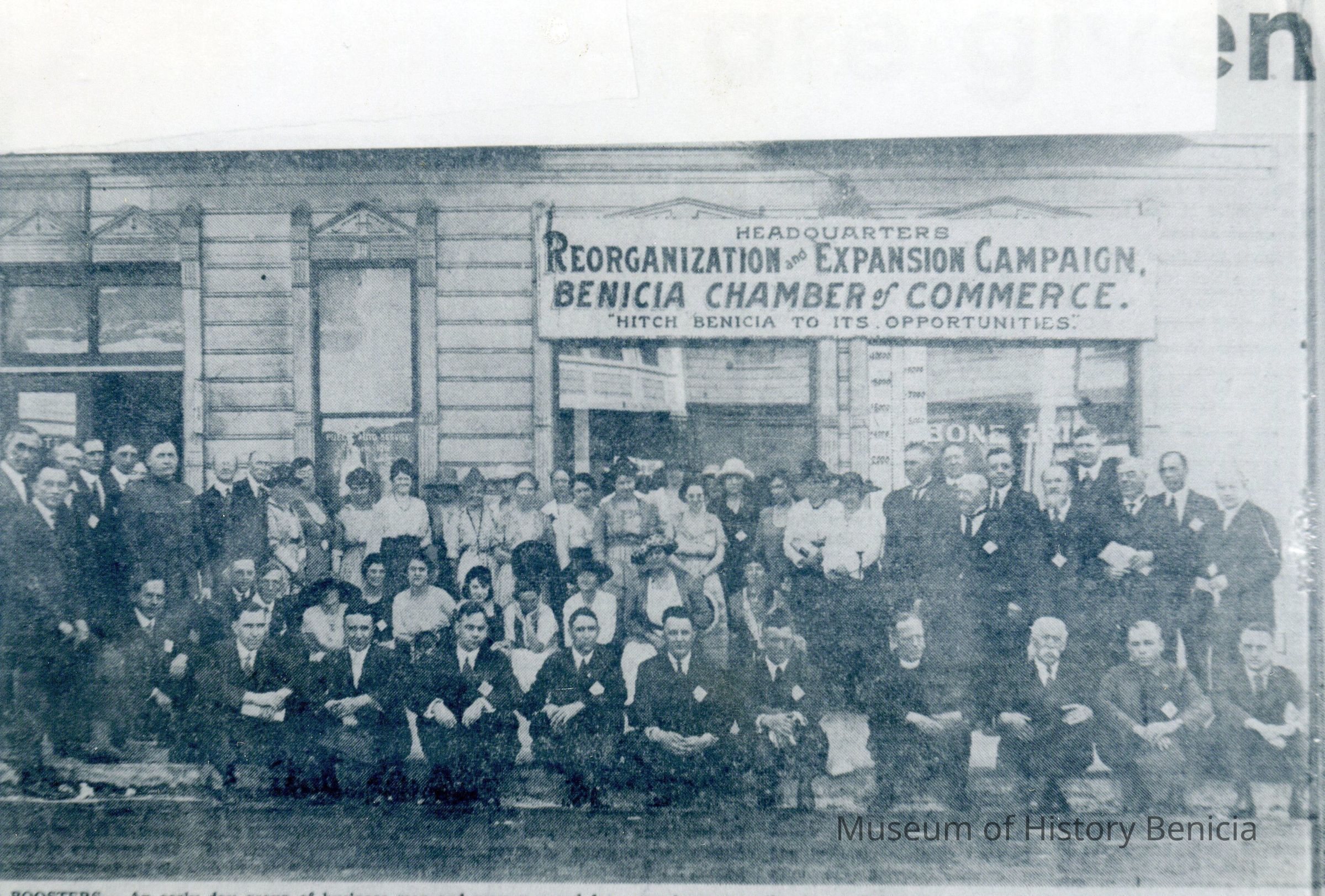 B/W photograph of re-organization of the Benicia Chamber of Commerce (they raised over $14,000 that year, 1921).Collection