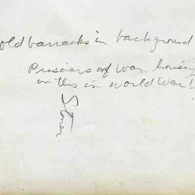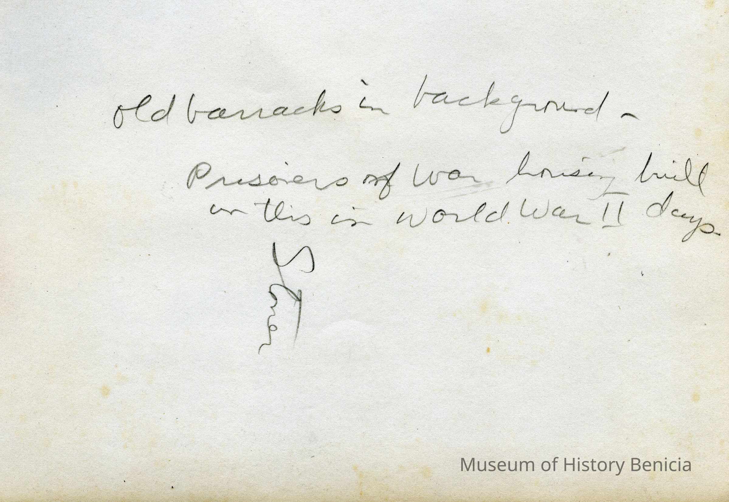 The back of the photo says "Stoner" probably referring to Emerson Stoner who worked at the Arsenal, This may have been his original photo from which the copy was made. It also talks of POWs in WWII being housed here.Collection