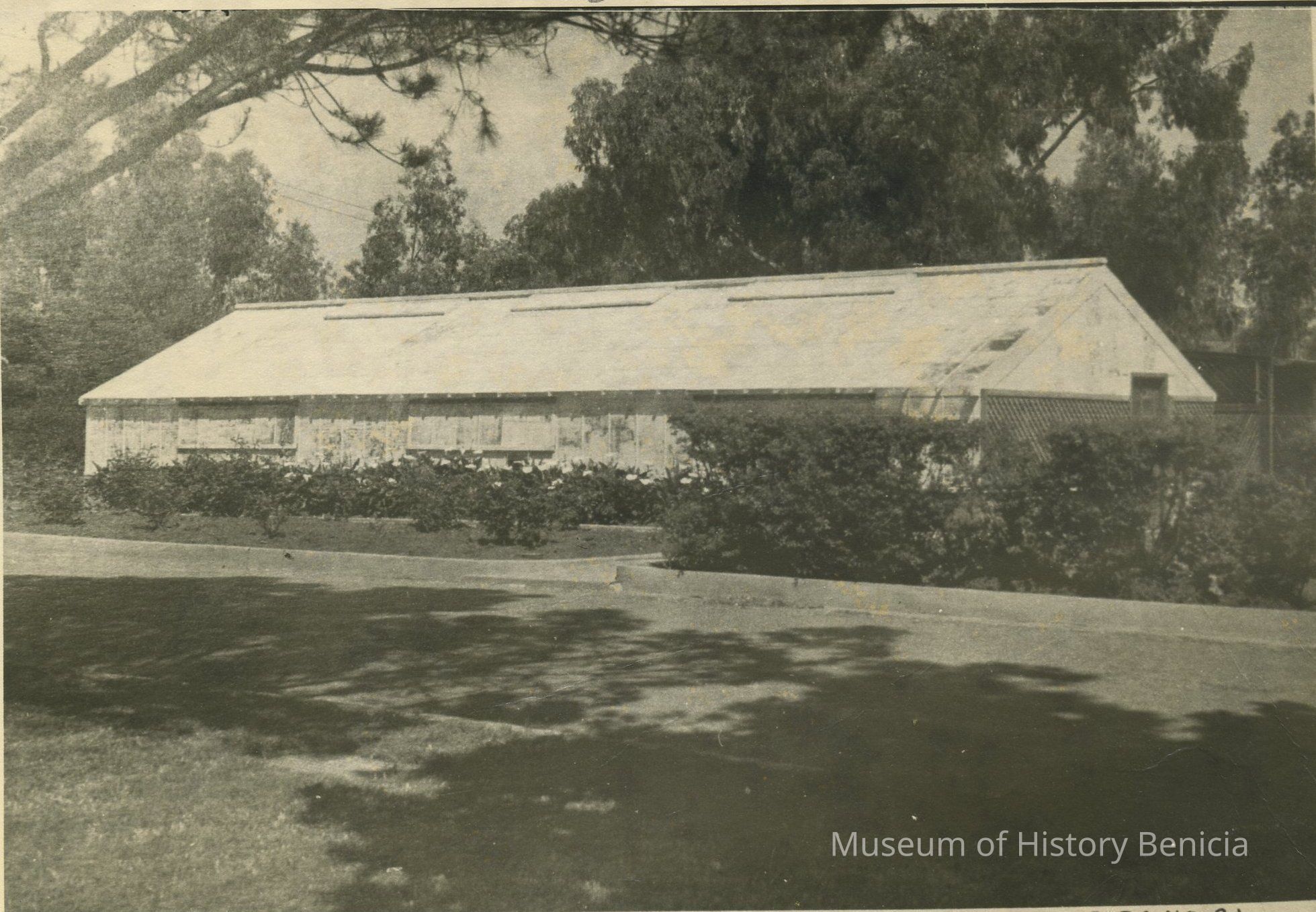 B/W photograph of Benicia Arsenal the old Greenhouse built in 1881