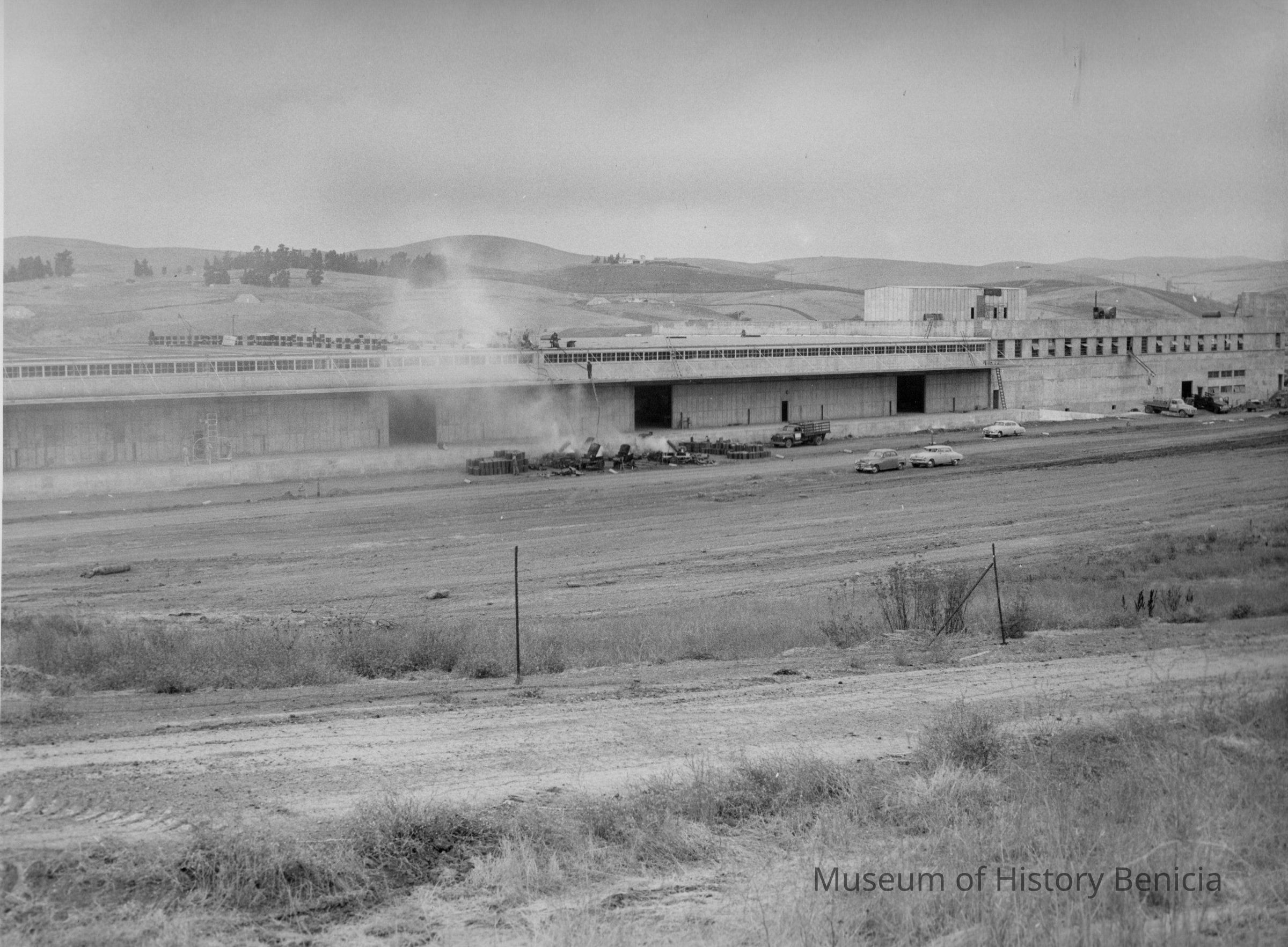 Roofing operation on Warehouse 10, Benicia Arsenal. U. S. Army photo stamp on back. B/W photo.