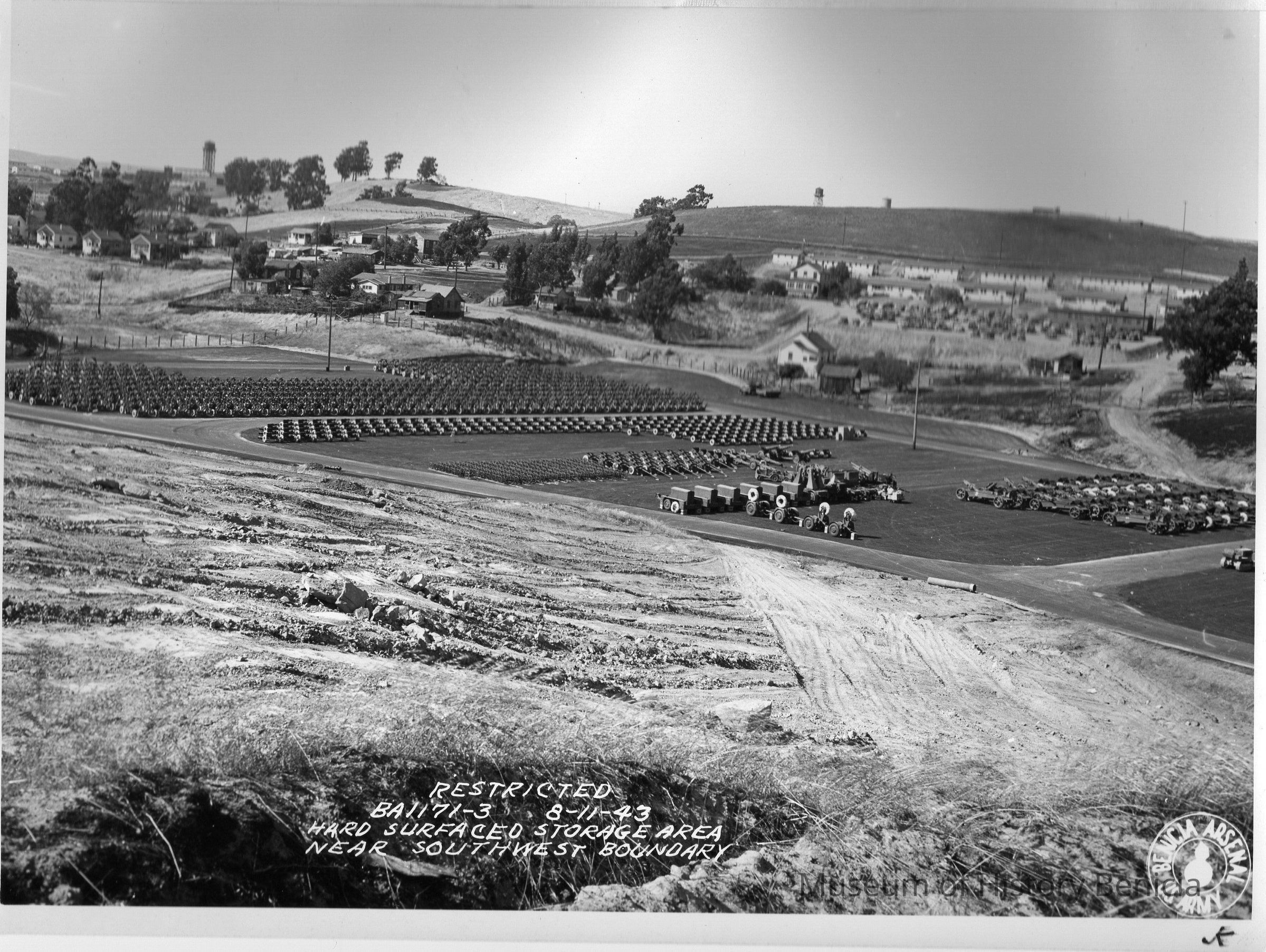 B/w Benicia Arsenal- hard surfaced storage area near southwest boundary. Image was Restricted.