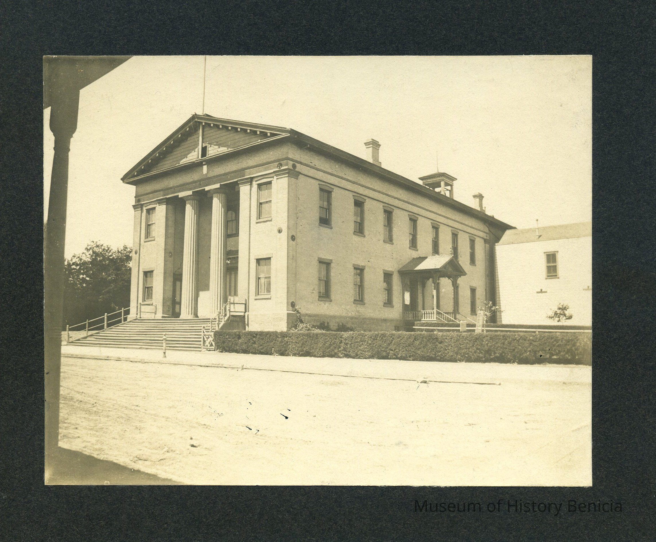 written on the back in pencil: "California first State Capitol Building in Benicia, Calif. Built in 1853."