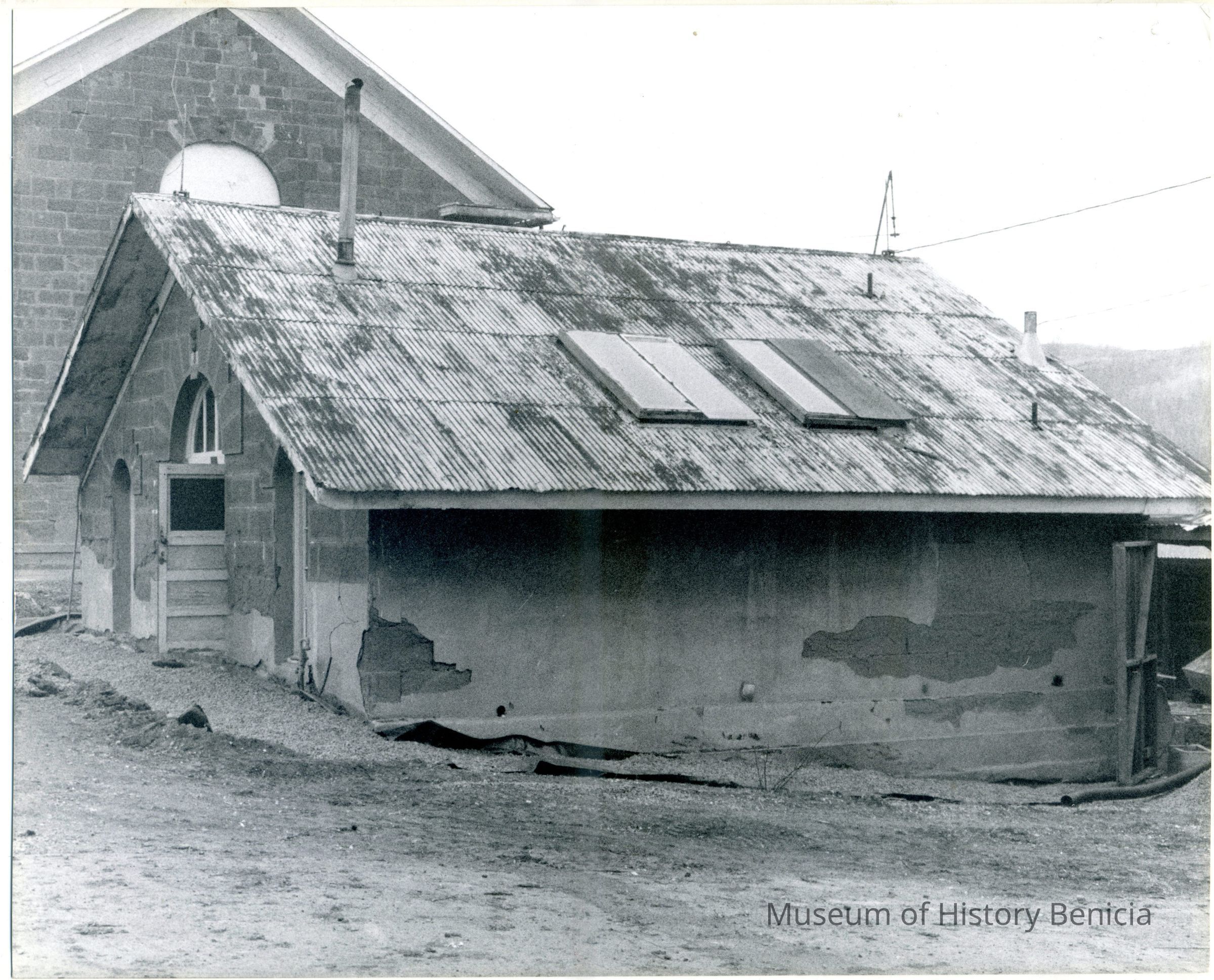 This is a black & white photograph of Benicia Arsenal building, 8, circa 1970. Now the Museum of History Benicia business office.