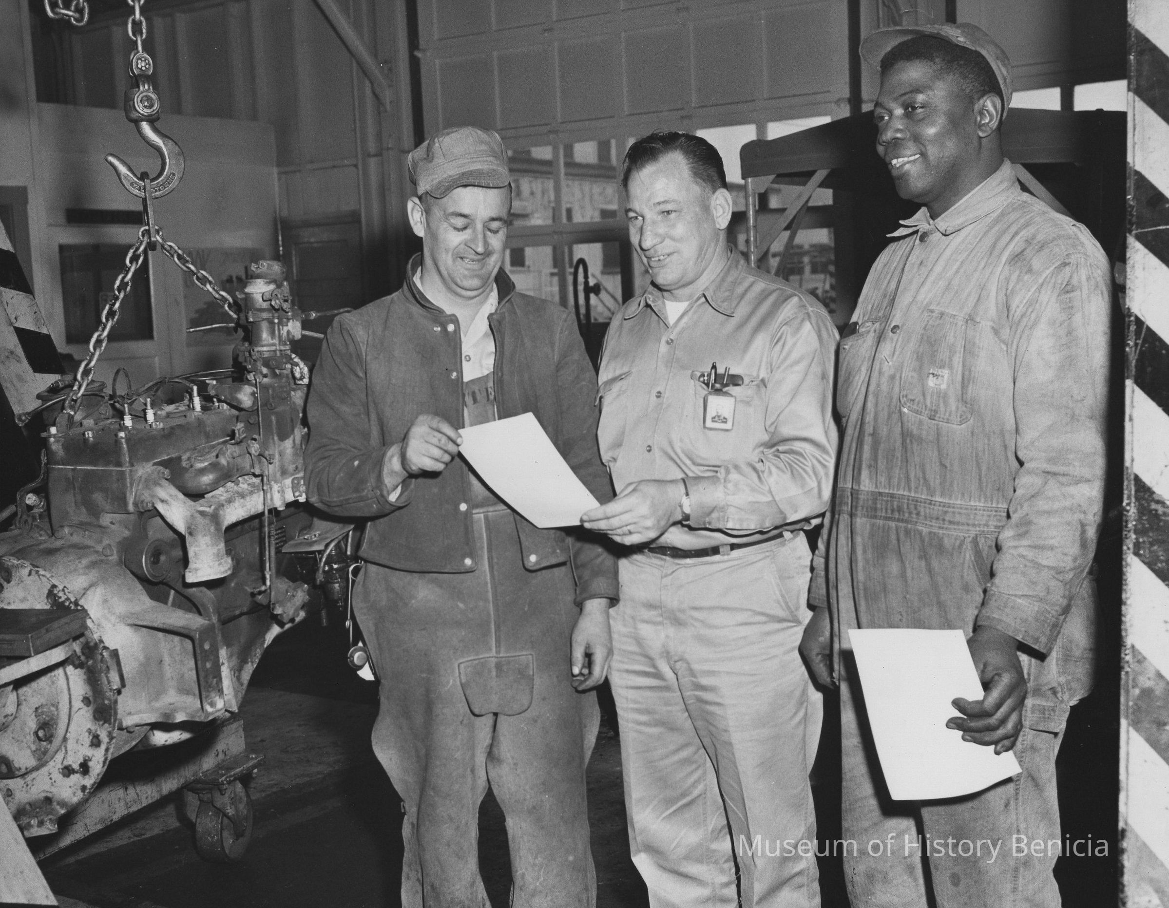 B/W Photograph: Marshall Monte and Edward Van Diver are presented with suggestion awards by Randall J. Hood. On back: Typewritten, glued-on description and ID's; identifications in pencil, circled 2 in upper left corner.Collection