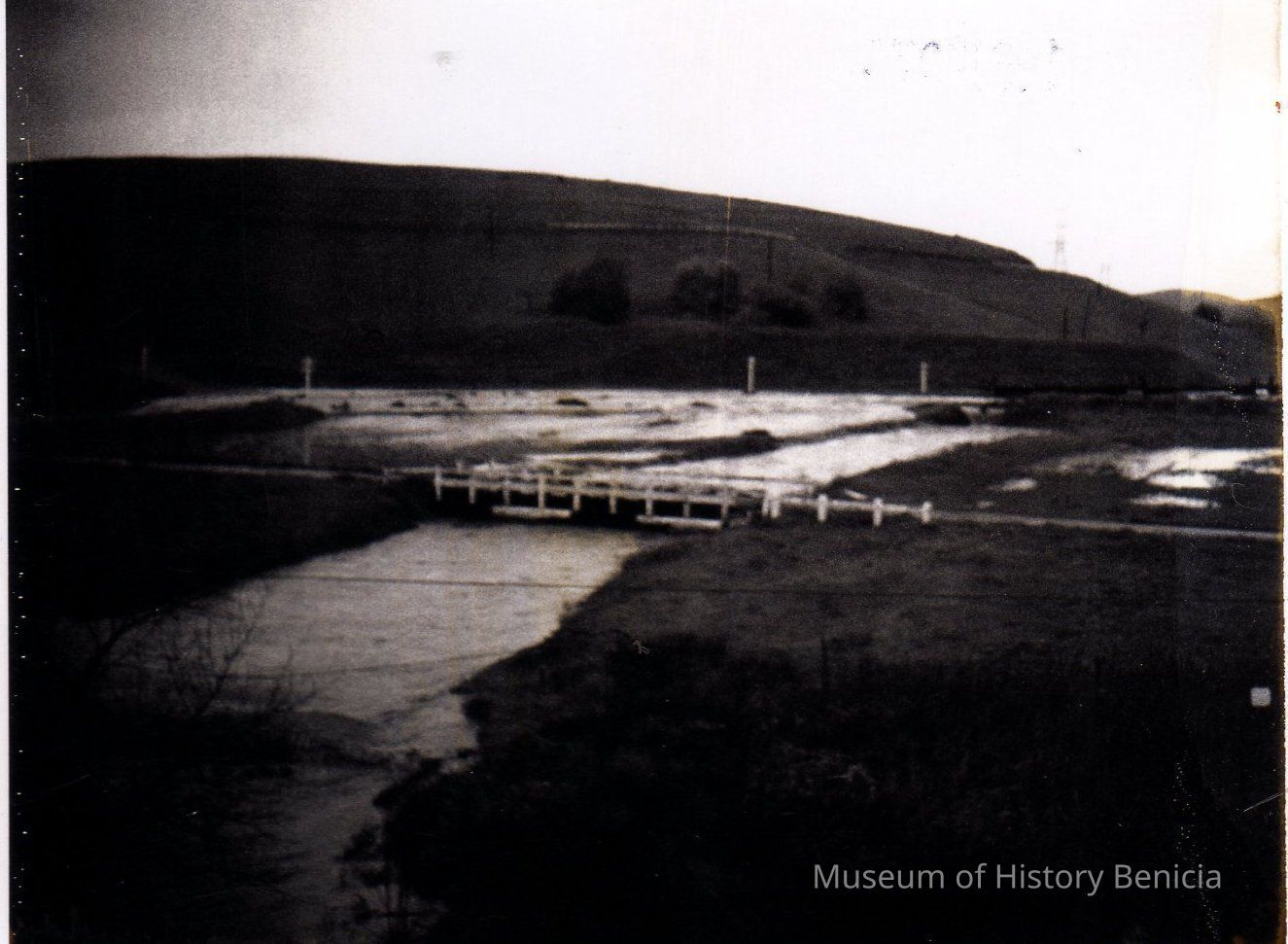 B/W Photograph: One in a series of 18 snapshots of flooded roads and fields in the Benicia Industrial Park.