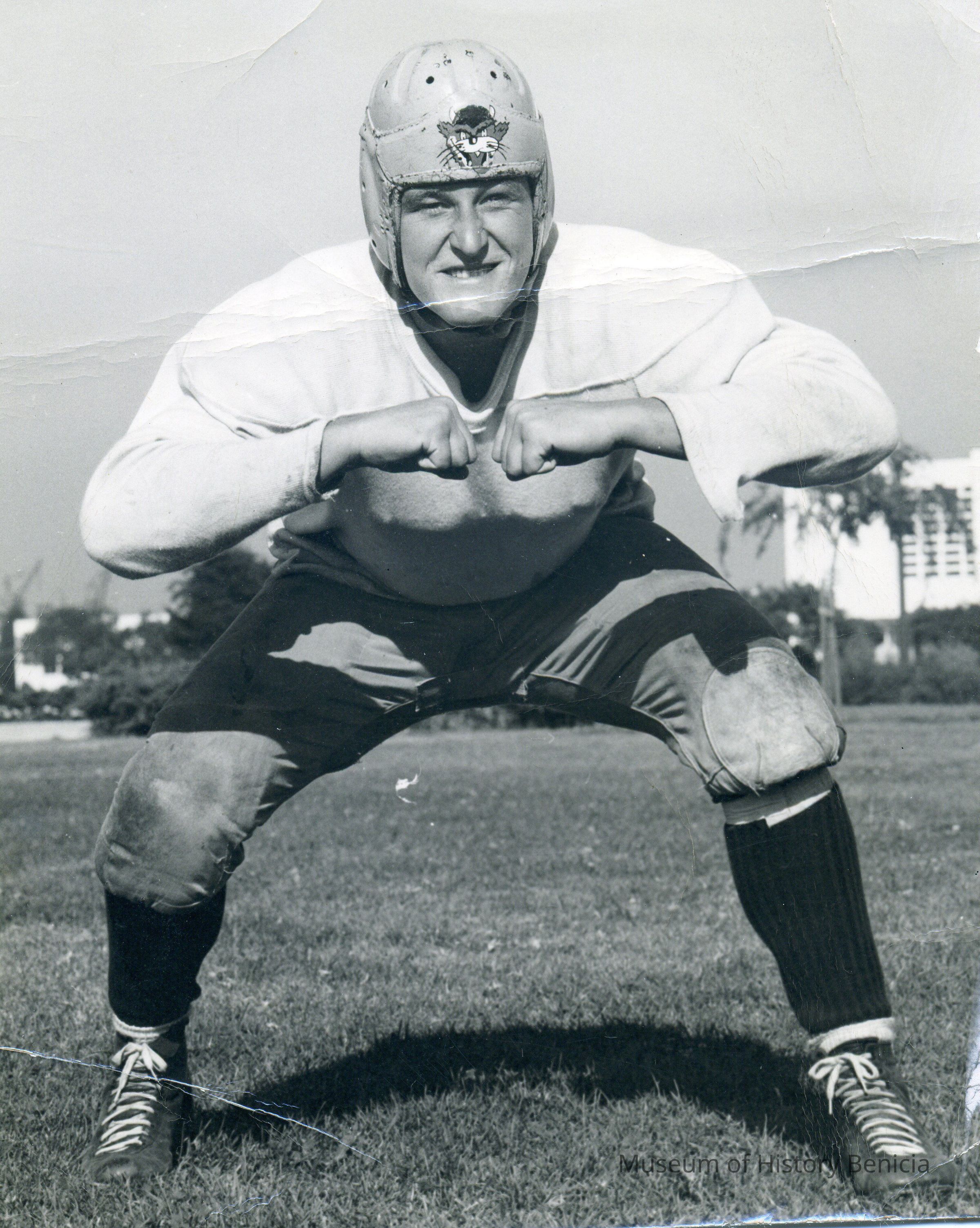 Photograph of John Irving (quarterback) in his football uniform. Note: duplicate of 2005.013.0005