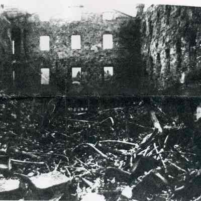 Internal debris of Clock Tower interior after explosion and fire of Oct. 18, 1912. Black and white photograph. (photocopy)