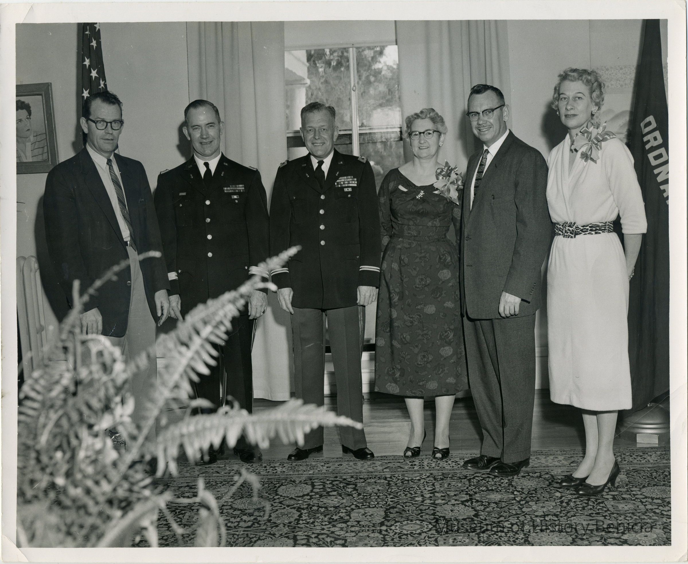 Occasion: Reception for civilian department heads at C.O.'s Quarters, hosted by Col. and Mrs. Lawther, and Mr. and Mrs. Yokum. Mr. Yokum was president of Civilian Employees Assn.Collection