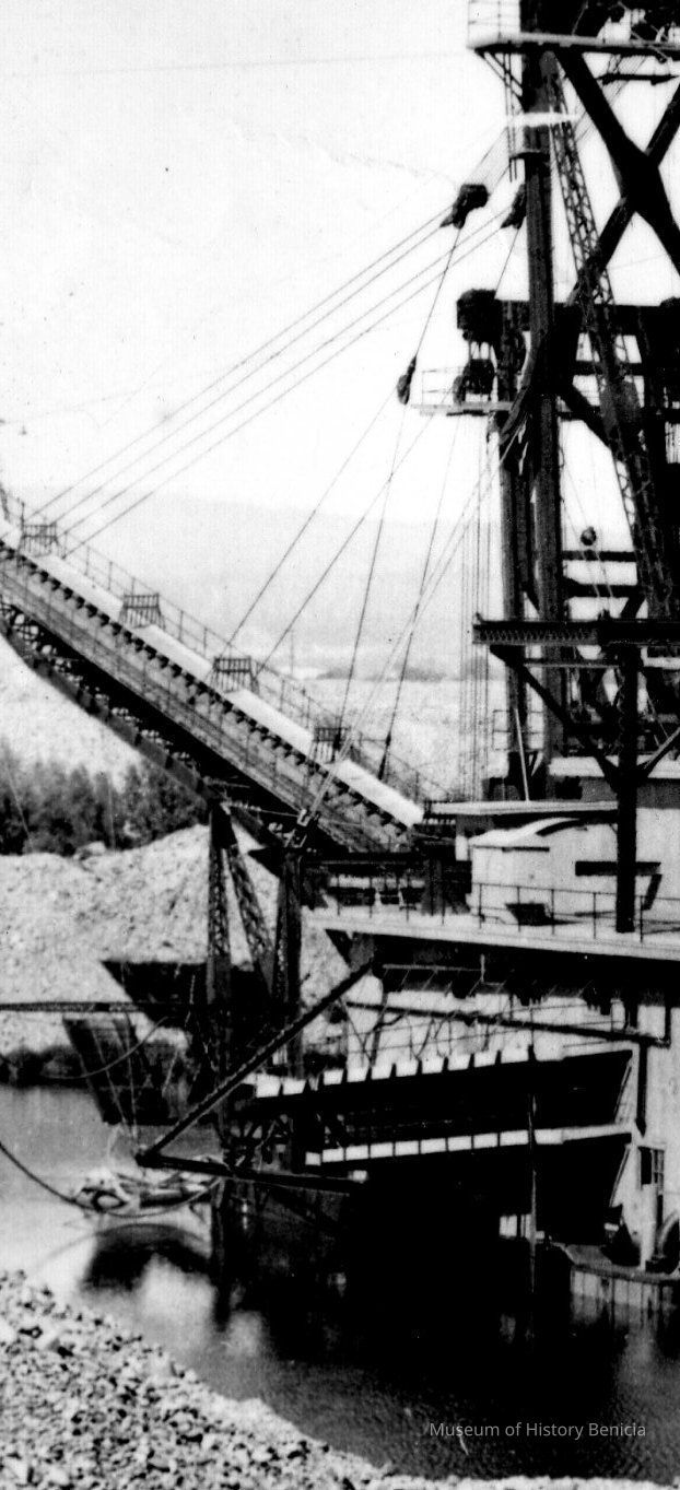 Black and white photo of gold dredger.