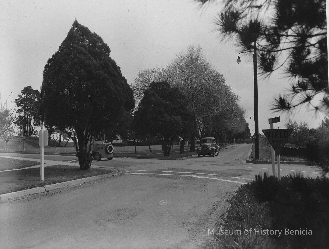 B/W photograph: Intersection of Jefferson Street and Park Road, looking East, Benicia Arsenal