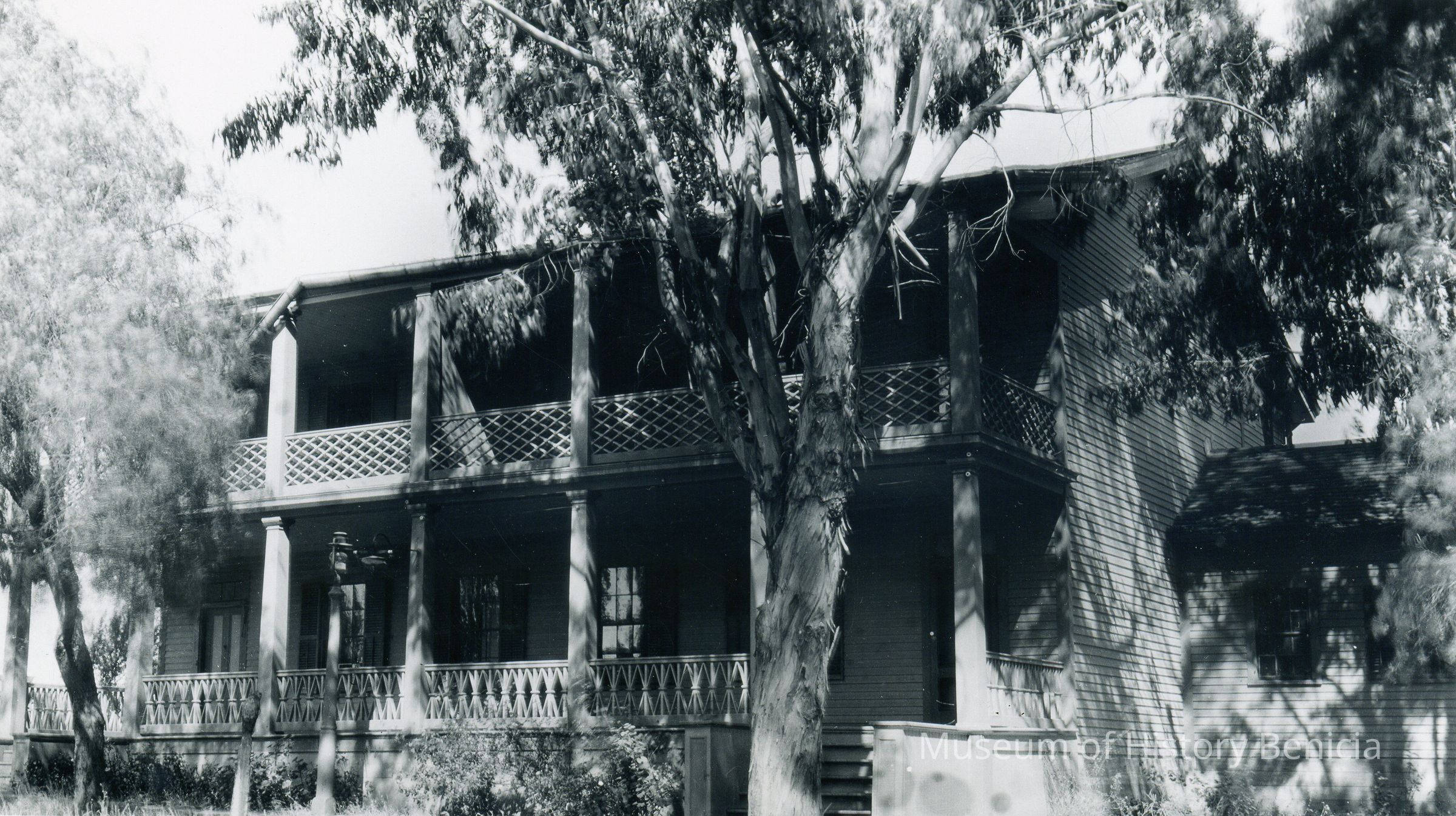 B/w photograph of the Officer's Quarters at the Benicia Barracks. The Lenoir Miller Collection.