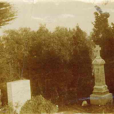 Photo of a cemetery. Two grave markers are visible but the inscriptions aren't readable.