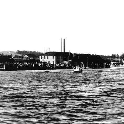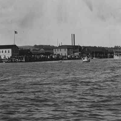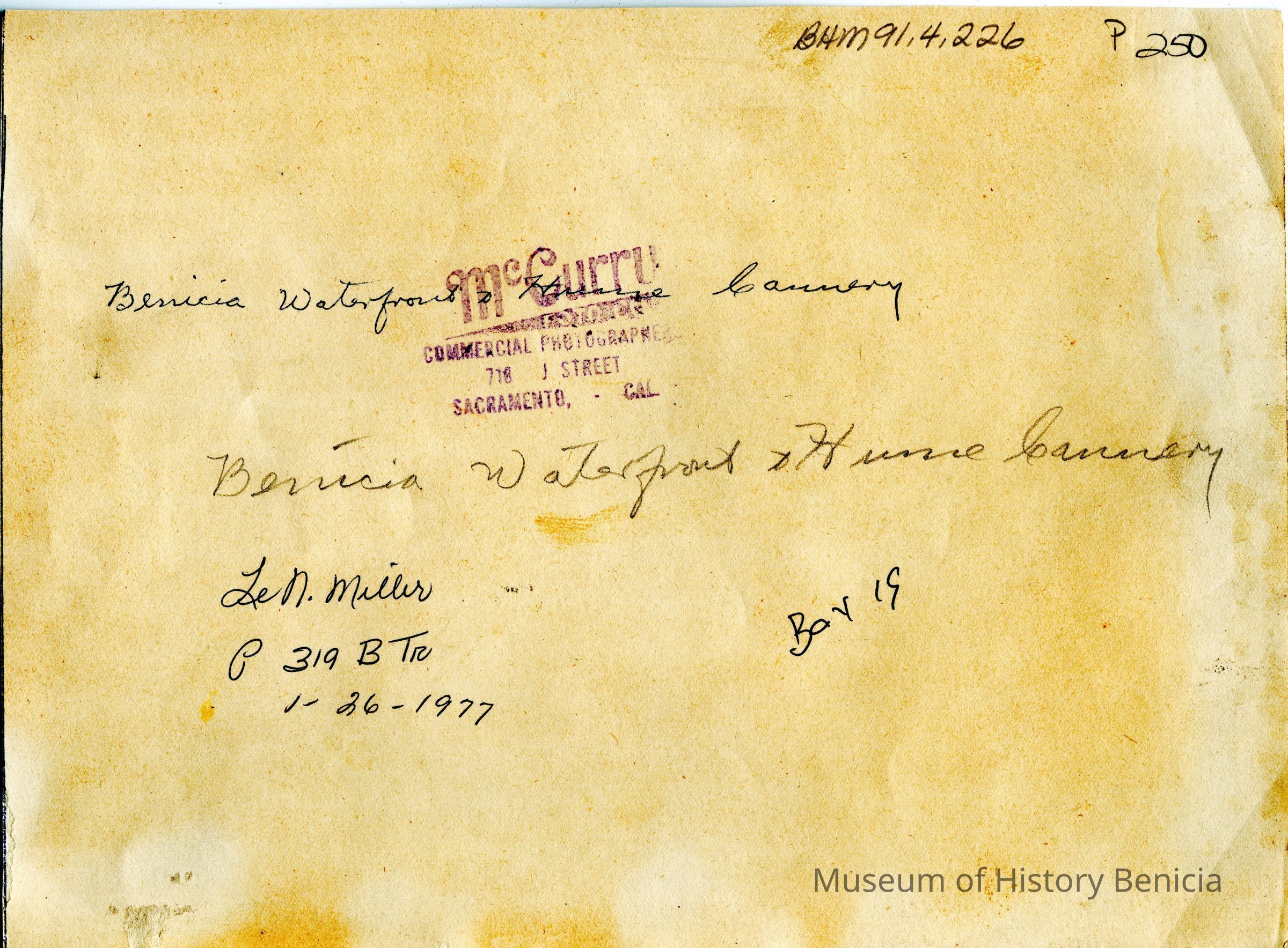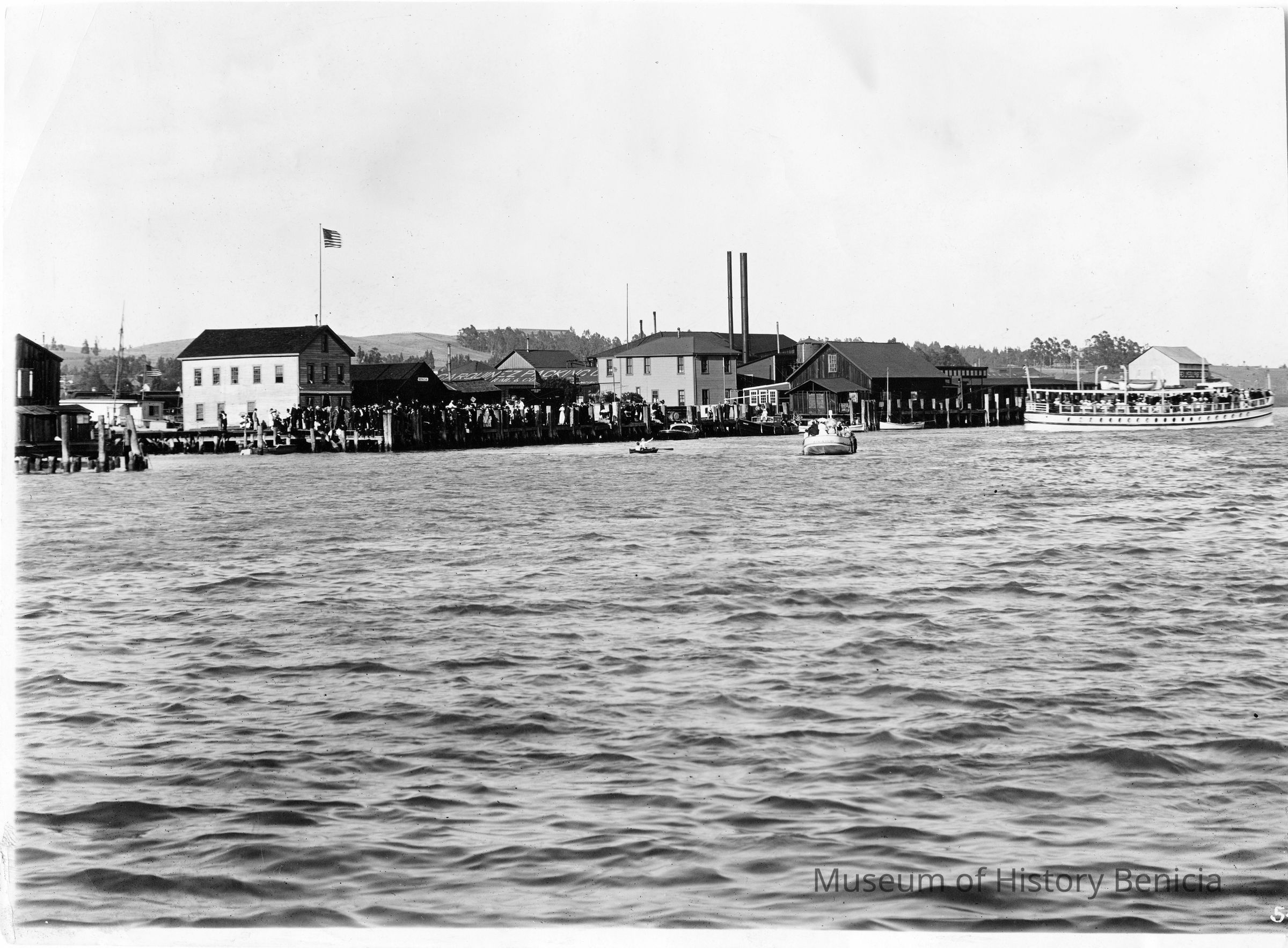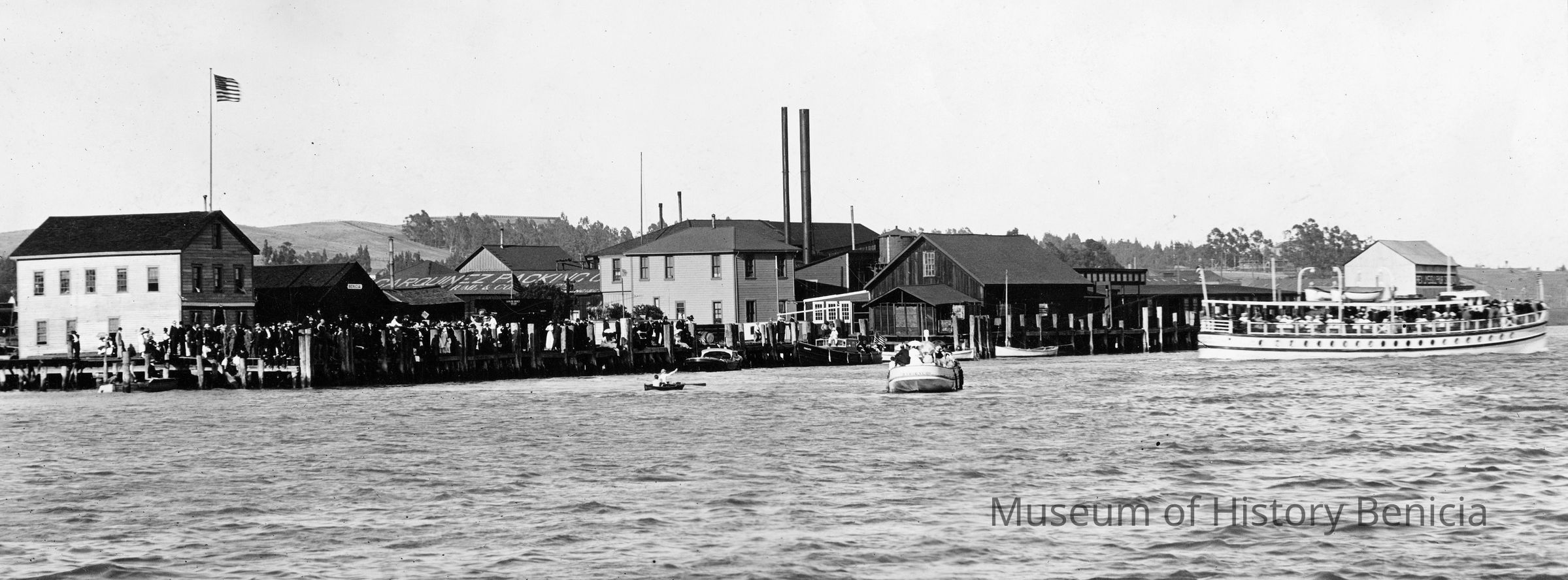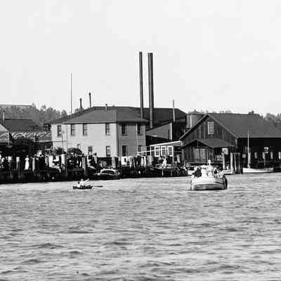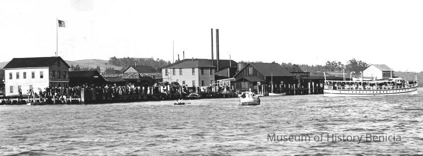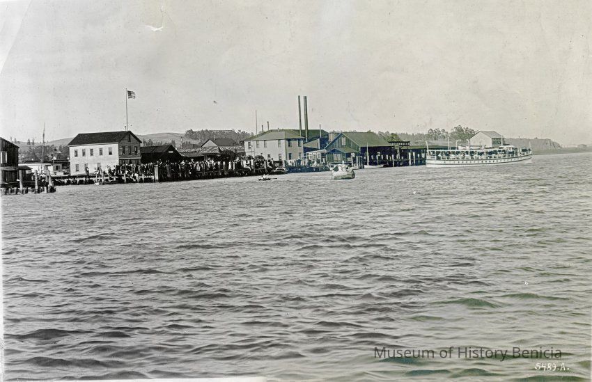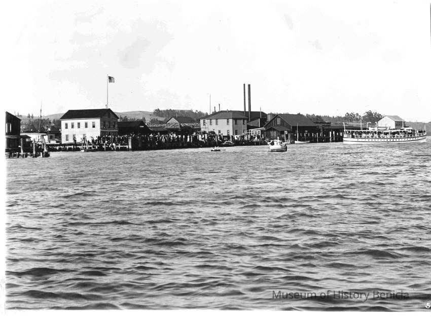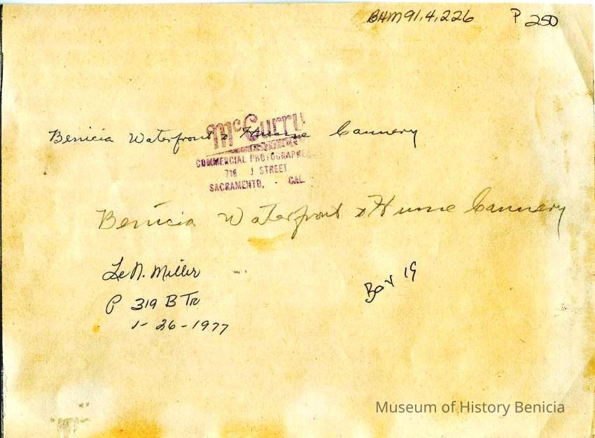 B/W photograph: Benicia waterfront and Hume Cannery.