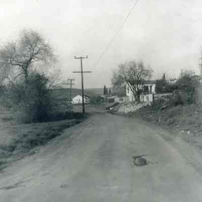 B/W photo of West Seventh Street looking north from Military West in 1964. It may still have been called Gucker Lane at this time. The white house on right side of street still exists. Houses facing Buena Vista are visible at far right. Building in center of photo, to left of the street are no longer standing.