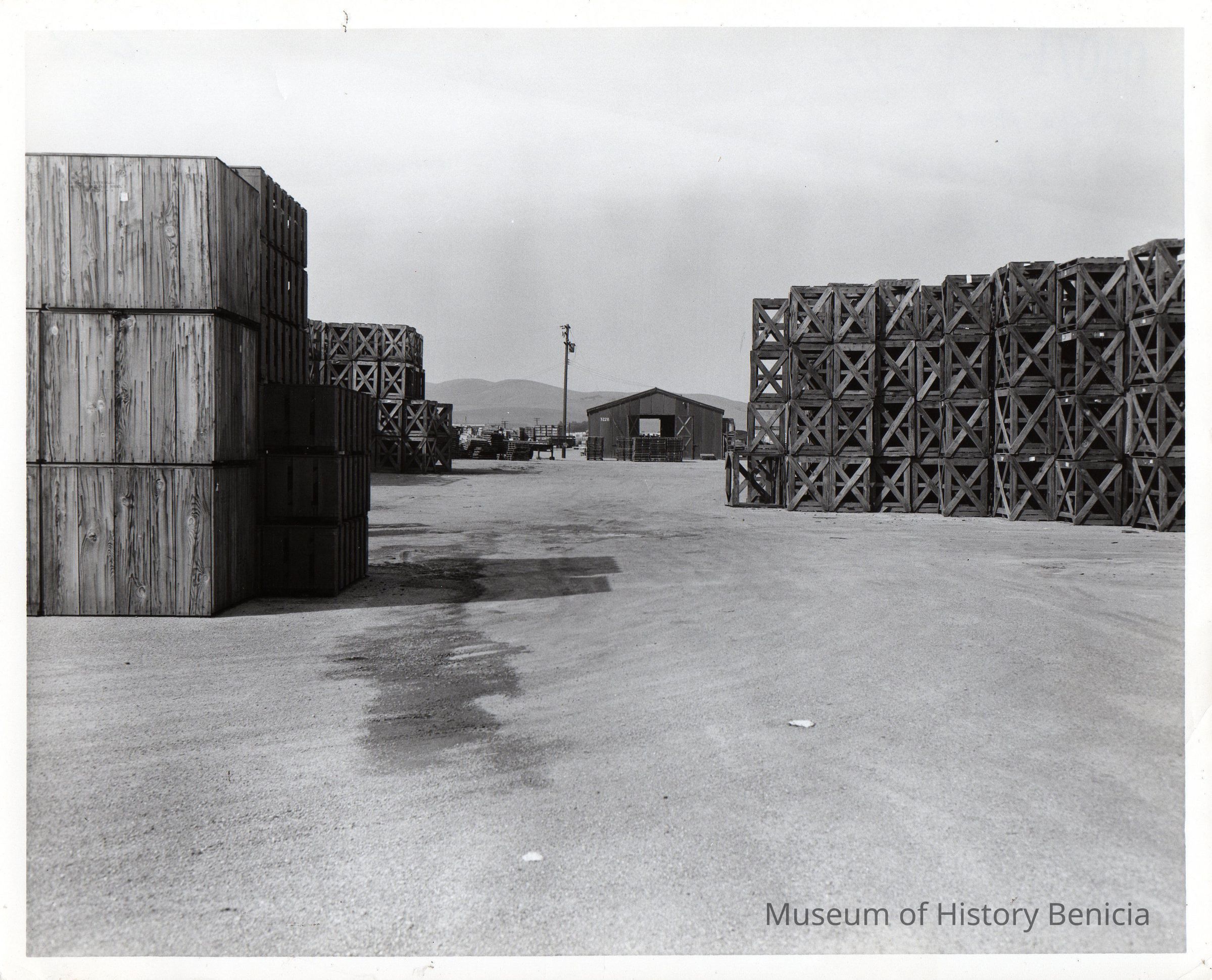 Storage area, lower Benicia Arsenal. B/W photo.