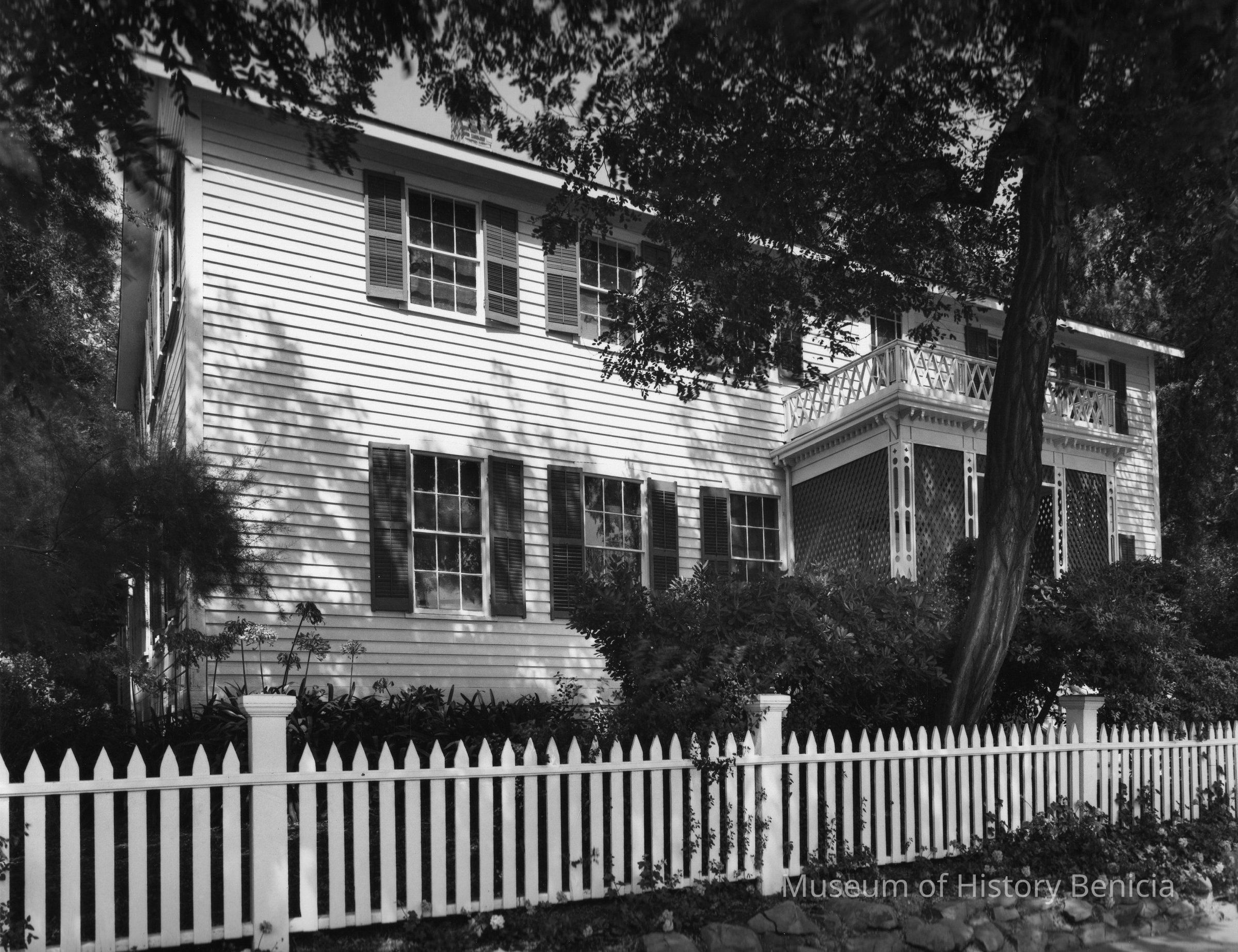 B/W photo of the Fischer-Hanlon House. It is adjacent to the Benicia Capitol Building.